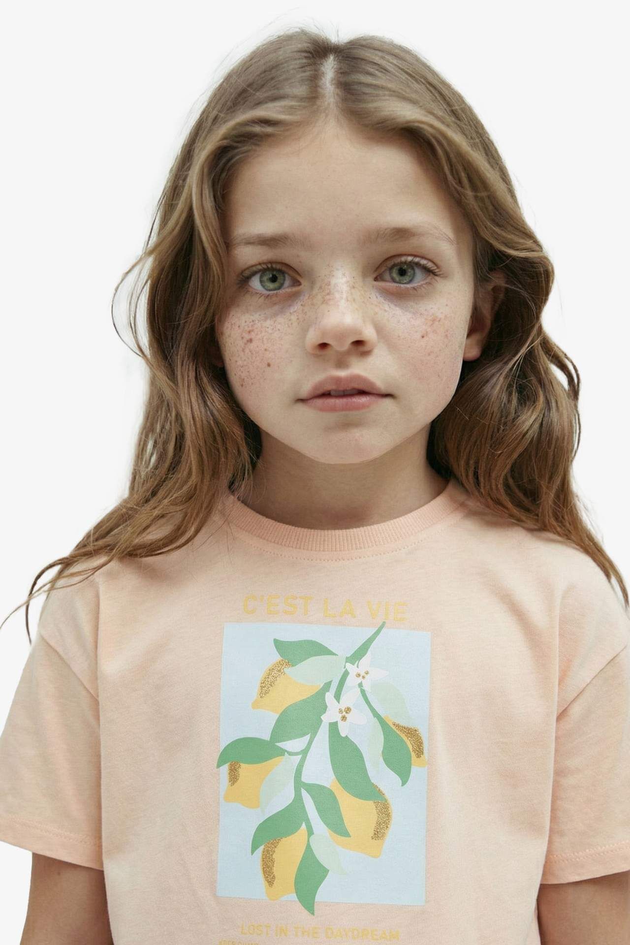 DeFacto DeFactoFit Kız Çocuk Crop Bisiklet Yaka Baskılı Kısa Kollu Tişört D0869A824HSOG90