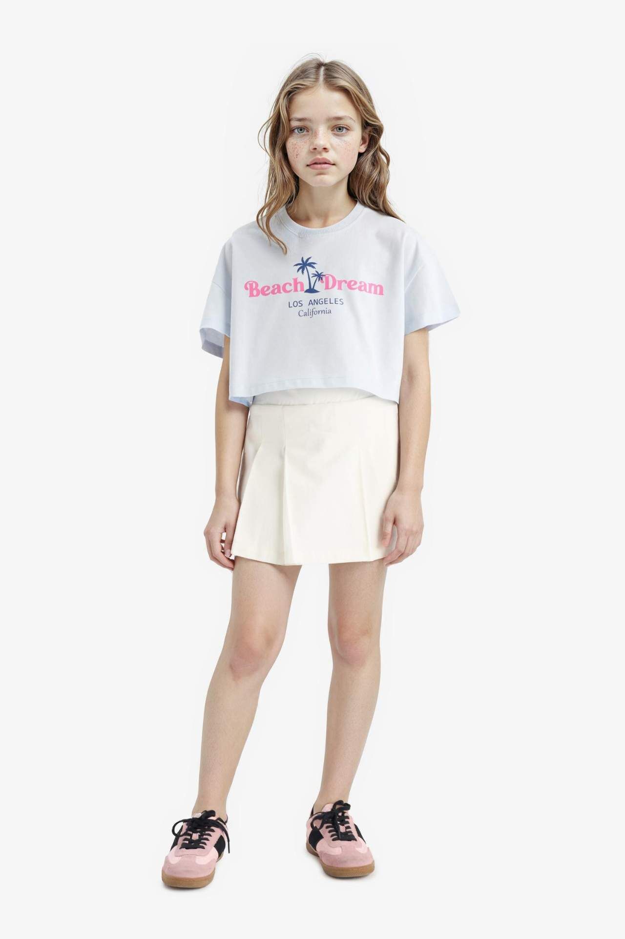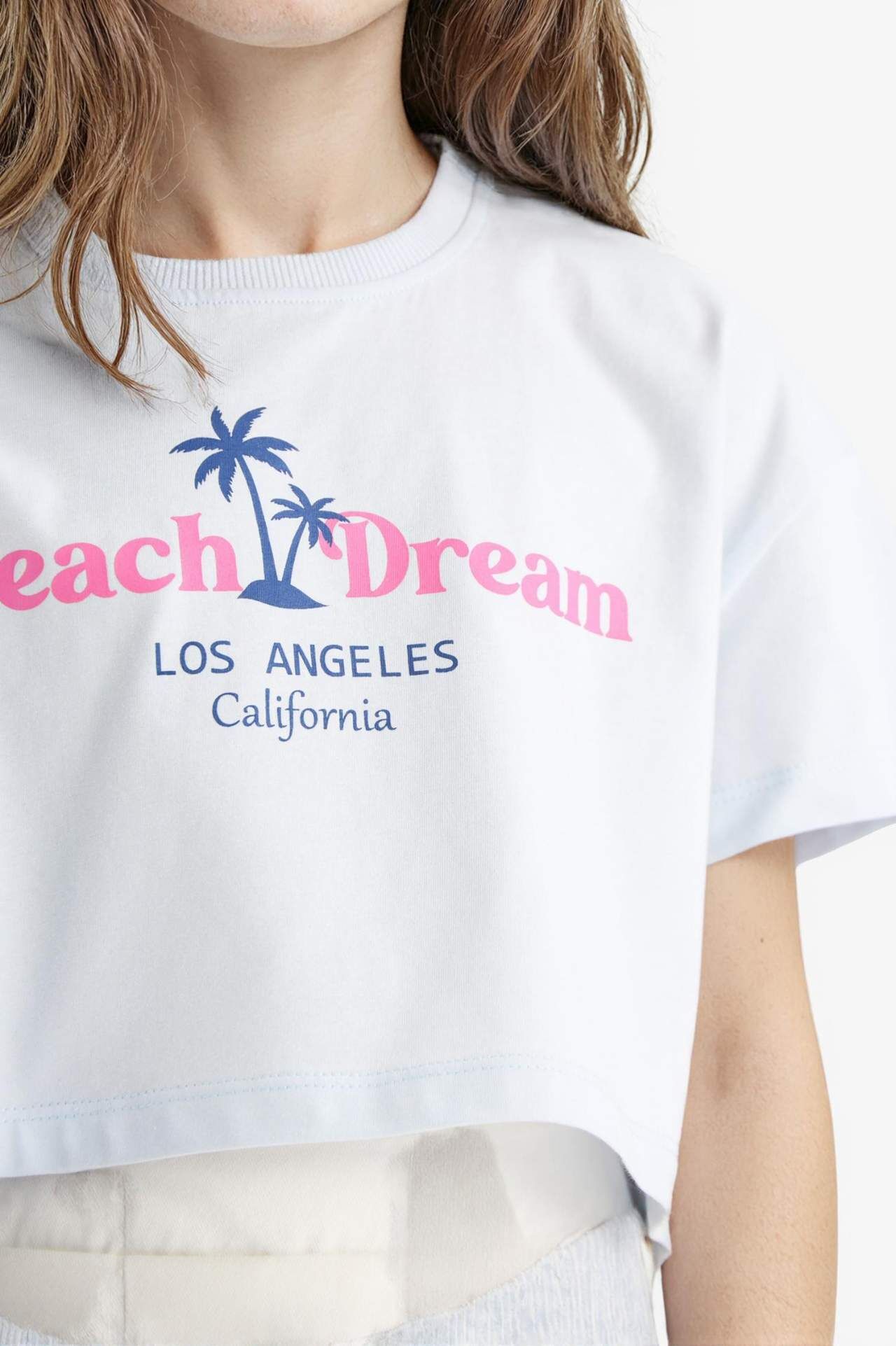 DeFacto Kız Çocuk Crop Bisiklet Yaka Baskılı Kısa Kollu Tişört E0385A825SMBE823