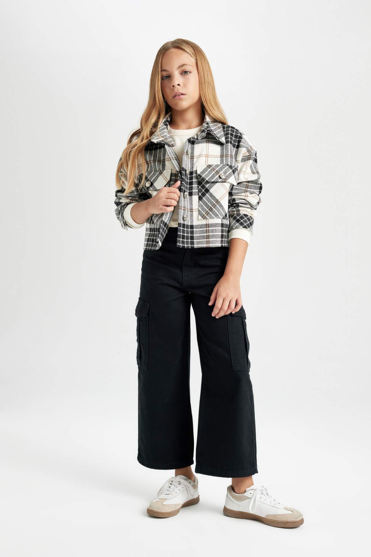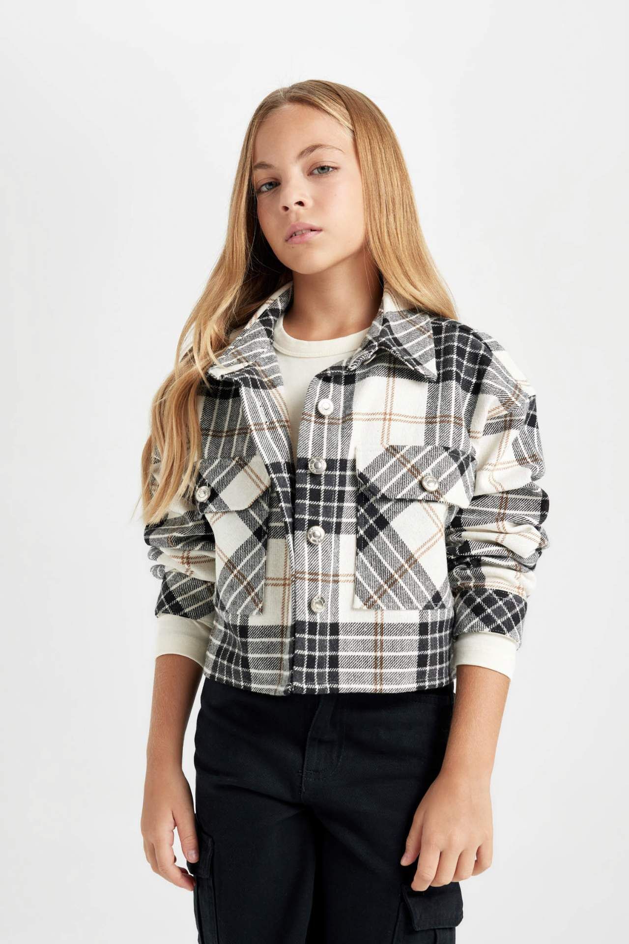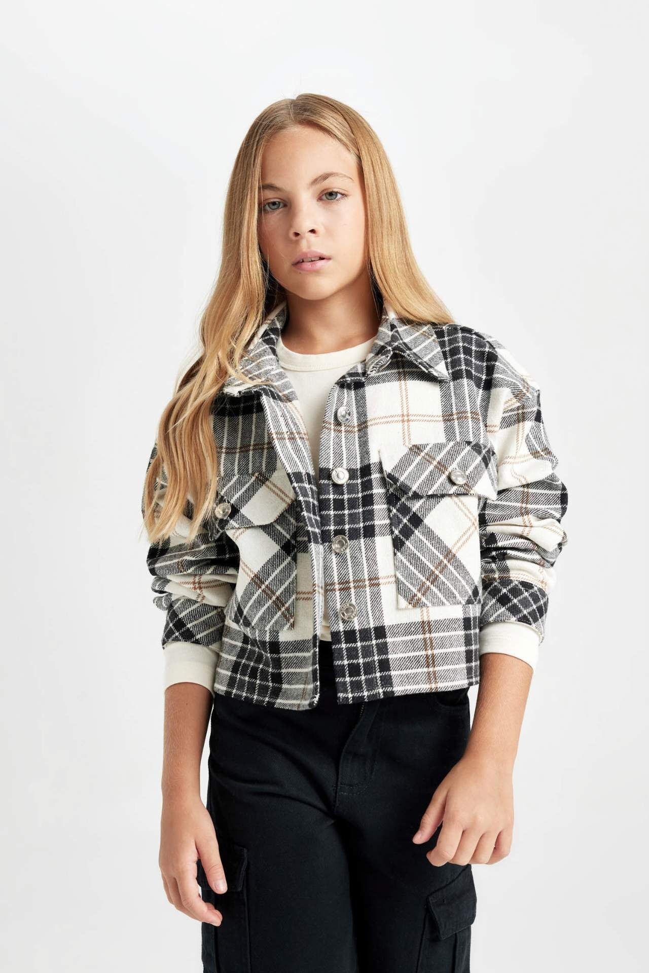 DeFacto Kız Çocuk Crop Kareli Uzun Kollu Gömlek Ceket