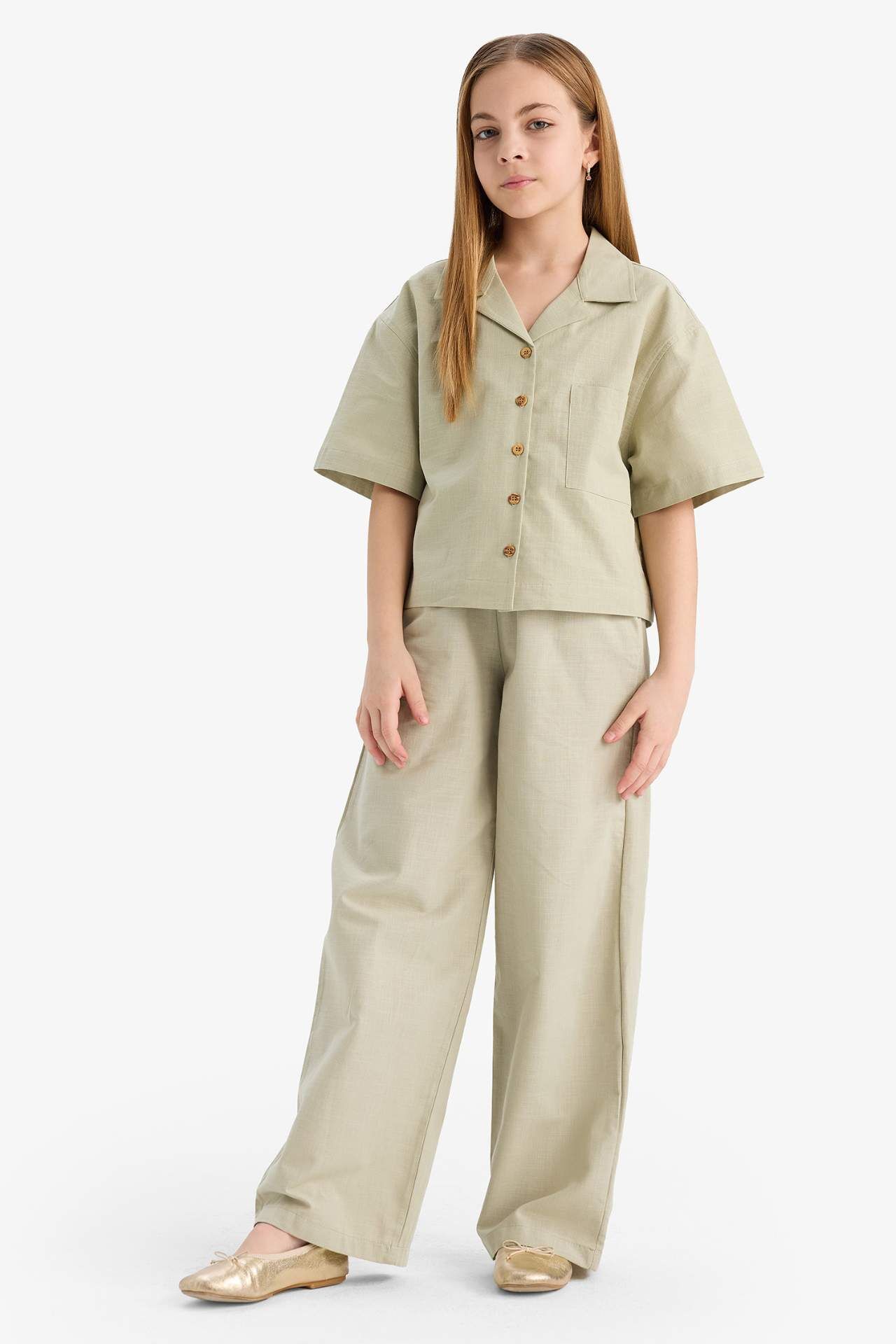 DeFacto Kız Çocuk Crop Keten Kısa Kollu Gömlek D7638A825SMGN1156