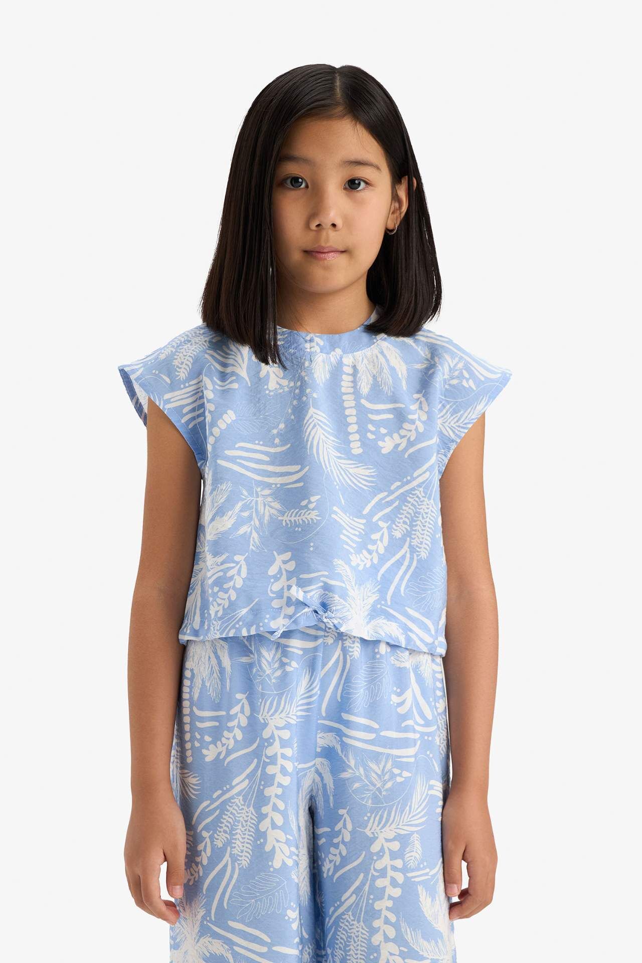 Kız Çocuk Desenli Kısa Kollu Bluz