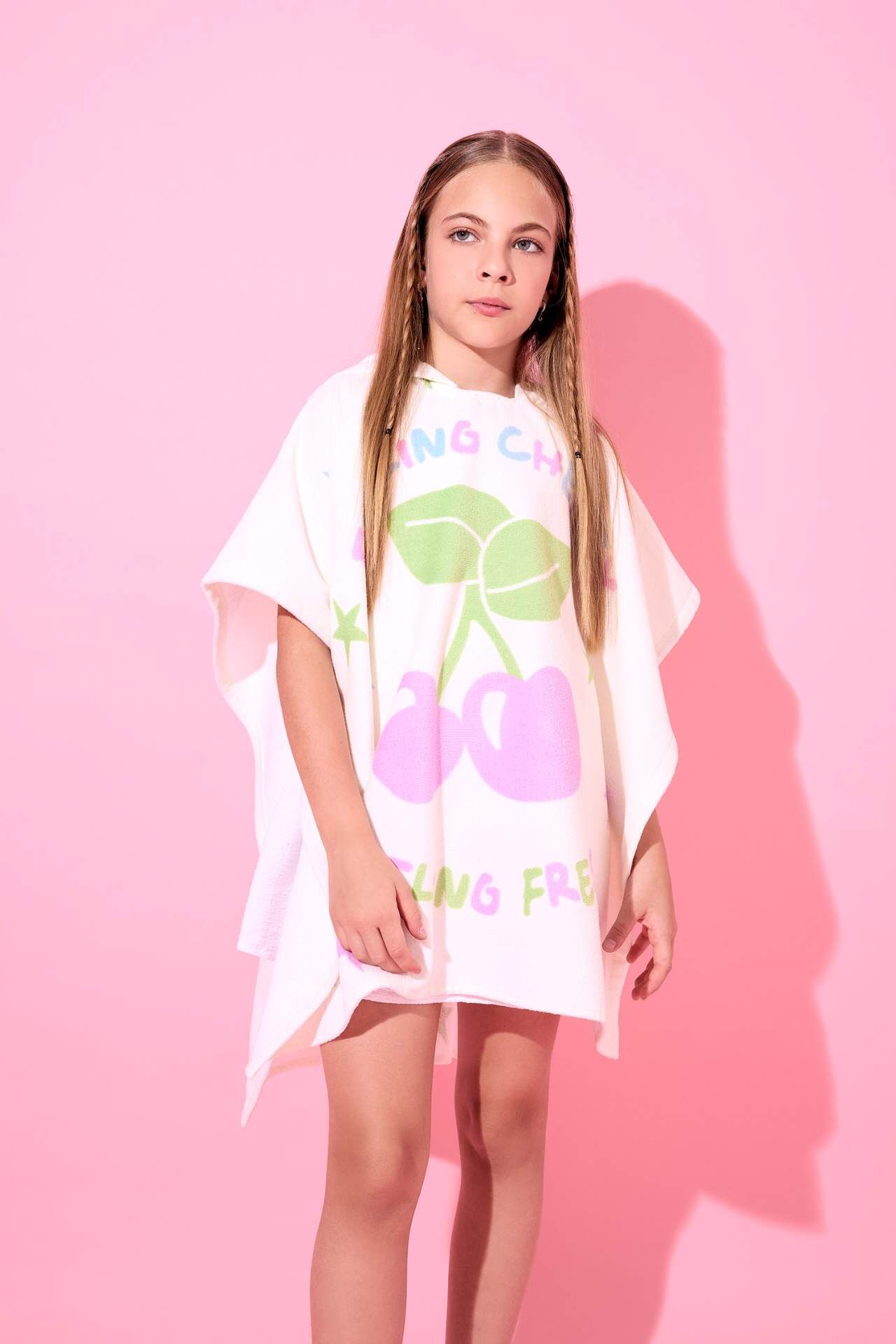 Kız Çocuk Desenli Pamuklu Panço Havlu
