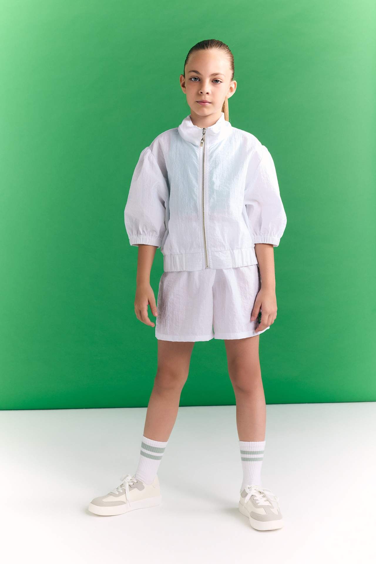 Kız Çocuk Dik Yaka Baskılı Fermuarlı Yarım Kollu Spor Hırka, şıklığı ve rahatlığı bir arada sunuyor. Yüksek kaliteli kumaşı ve dikkat çekici detaylarıyla her kombini tamamlayacak bir parça. Kız çocuklarının gardırobunda vazgeçilmez olmaya aday. Poliamid 100%,Poliamid 100% Manken Bedeni: Göğüs: 0 Boy: 1,36 Basen: 0 Bel: 0
