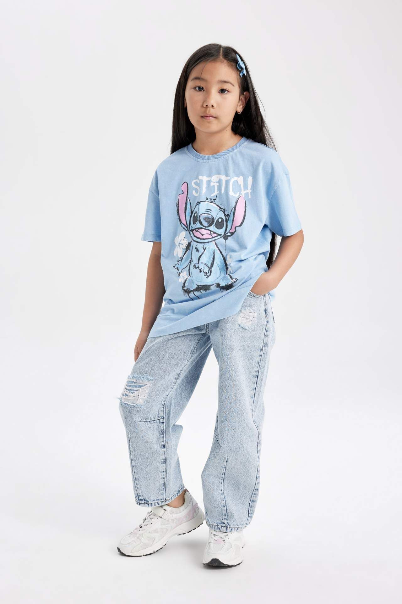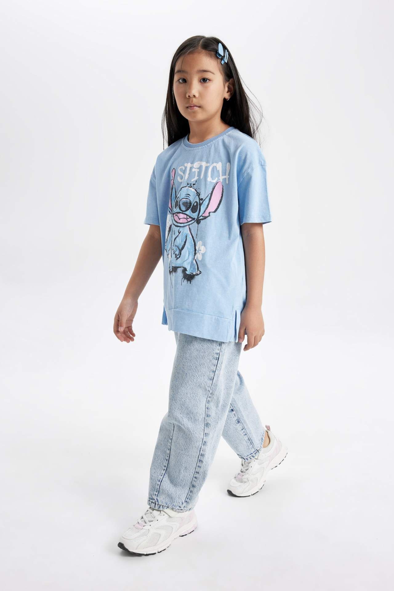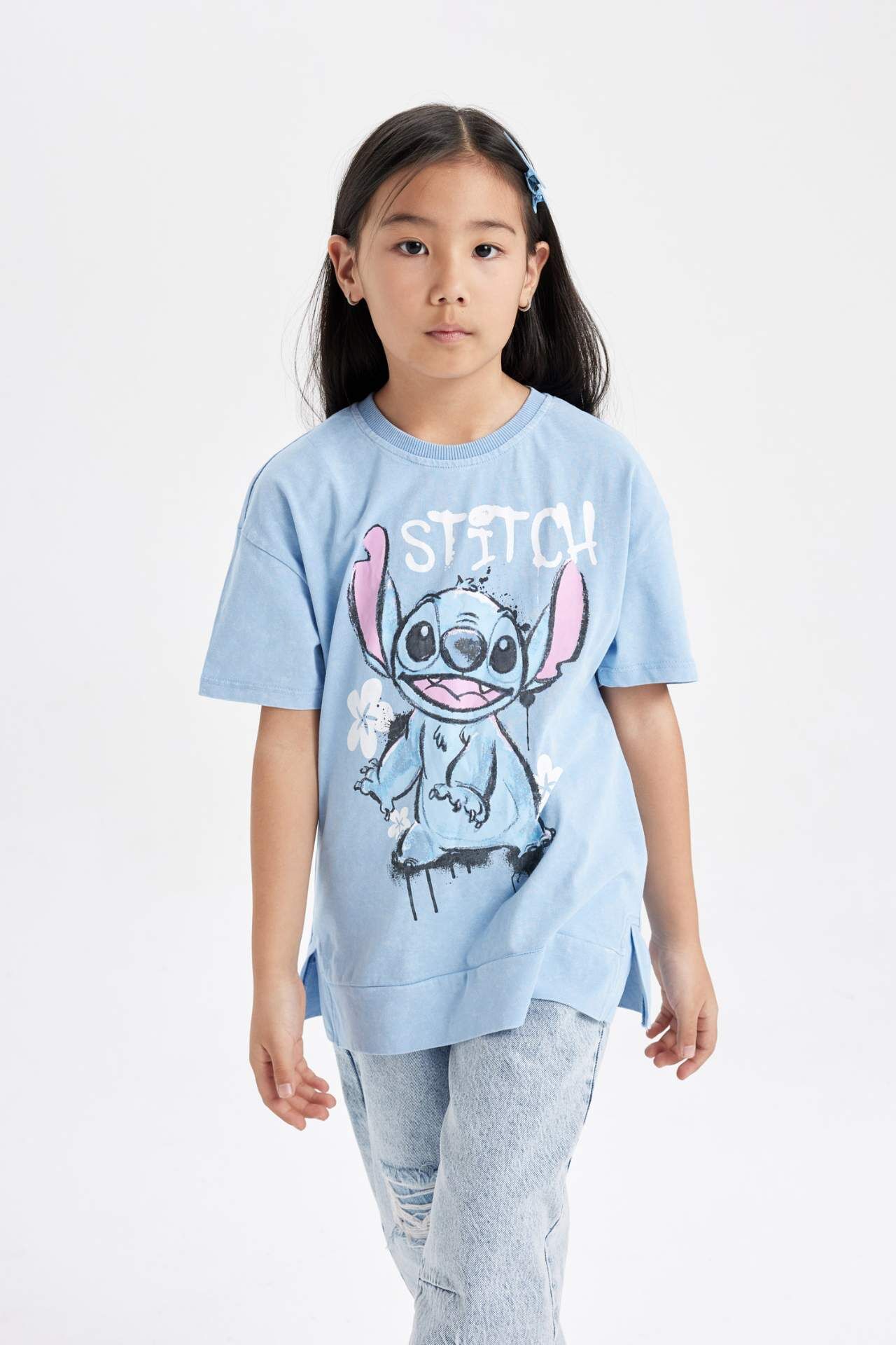 DeFacto Kız Çocuk Disney Lilo & Stitch Oversize Fit Kısa Kollu Tişört