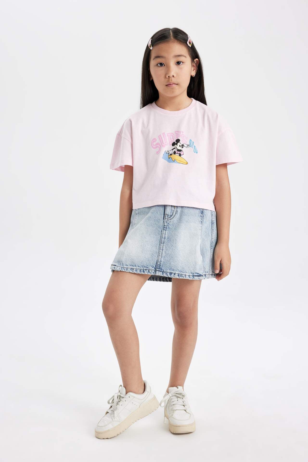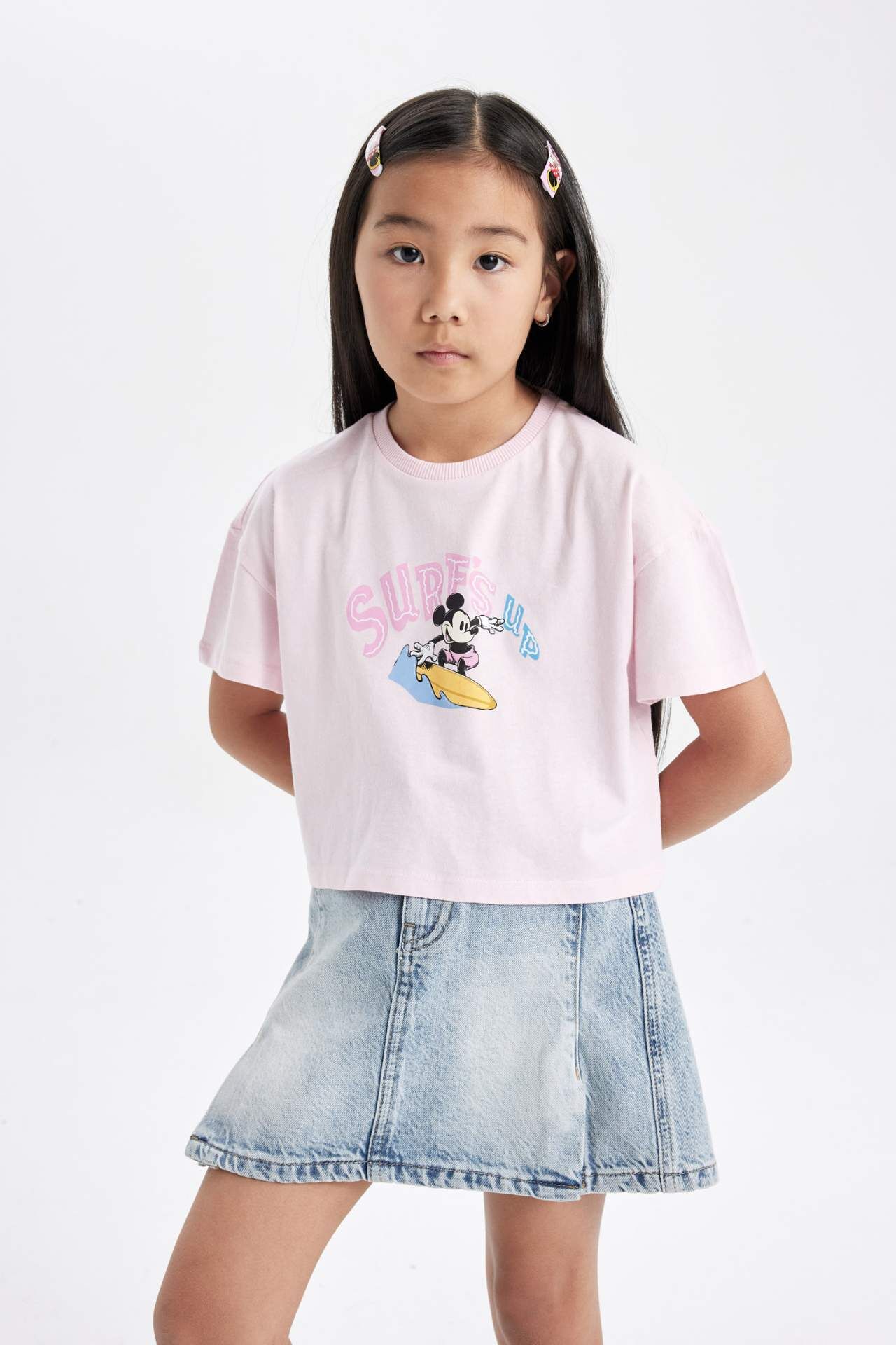 DeFacto Kız Çocuk Disney Mickey & Minnie Crop Bisiklet Yaka Kısa Kollu Tişört