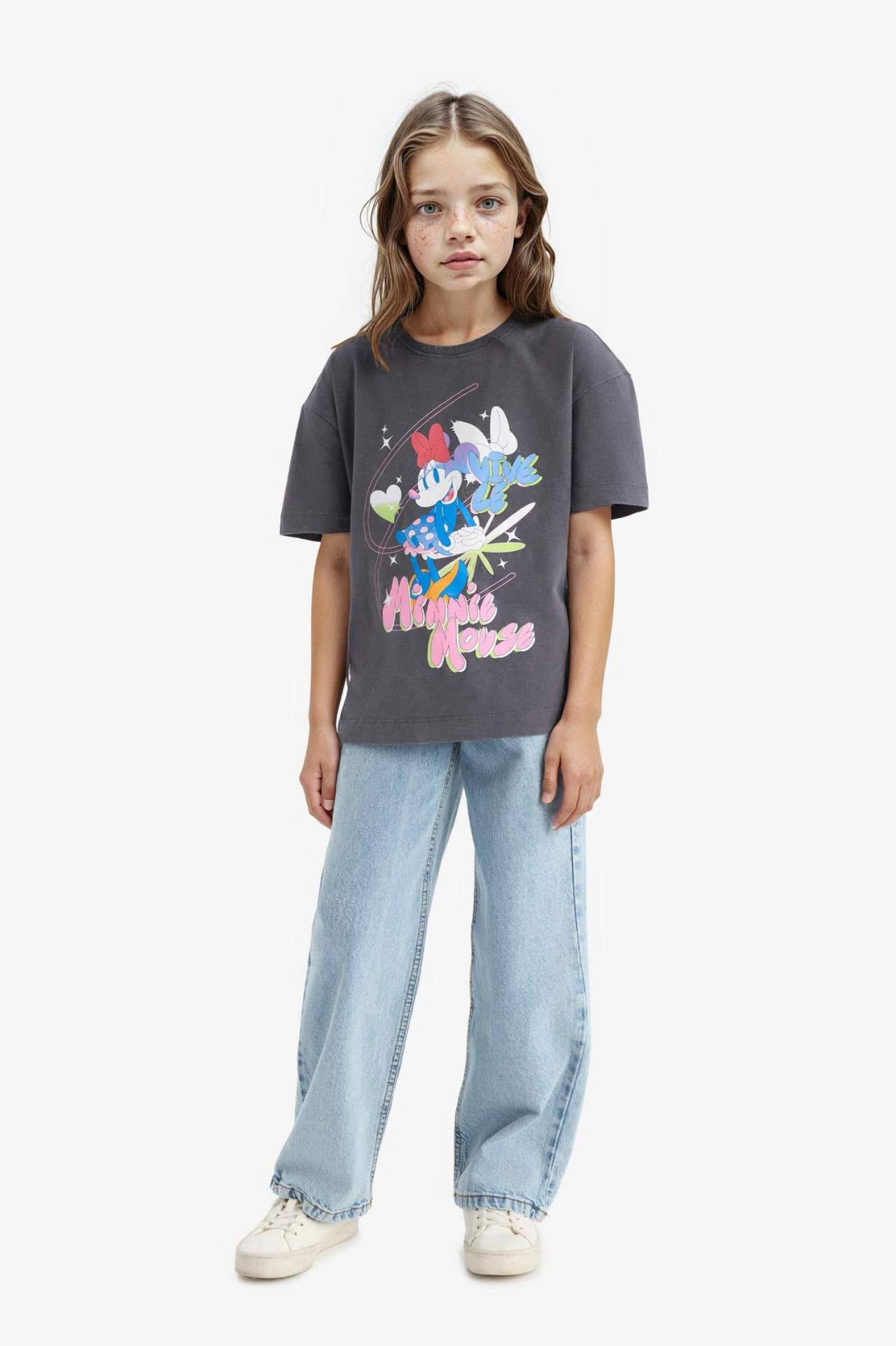 DeFacto Kız Çocuk Disney Mickey & Minnie Oversize Geniş Kalıp Bisiklet Yaka Kısa Kollu Tişört E2617A825SMAR148