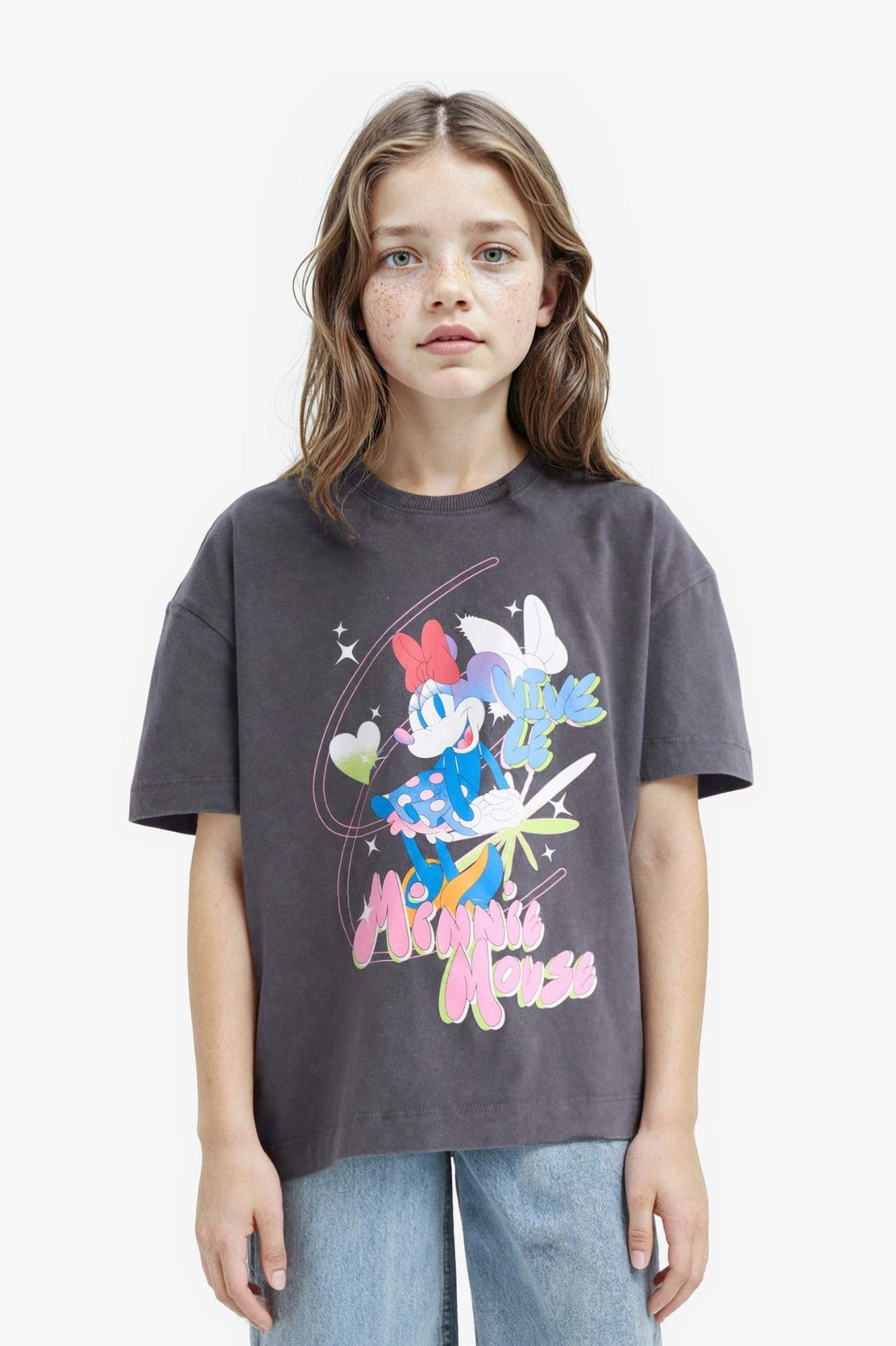 Disney Mickey & Minnie lisanslı örme kız çocuk kısa kollu tişört. Oversize geniş kalıp ve antrasit renk seçeneğiyle. İlkbahar/Yaz mevsim koşullarına uygun bisiklet yaka detaylarıyla. Pamuk 100%,Pamuk 100%,Pamuk 100%,Pamuk 100%,Pamuk 100%,Pamuk 100%,Pamuk 100%,Pamuk 100%