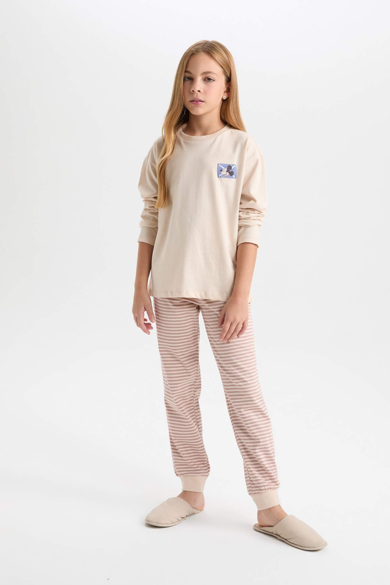 Kız Çocuk Pijama Takımı, Disney'in sevimli karakterleri Mickey ve Minnie ile tasarlanmıştır. Uzun kollu üstü ve beli lastikli altıyla rahat bir uyku deneyimi sunar. Çocuğunuzun rahatlığı ve şıklığı için ideal bir seçimdir. Pamuk 100%,Pamuk 100%