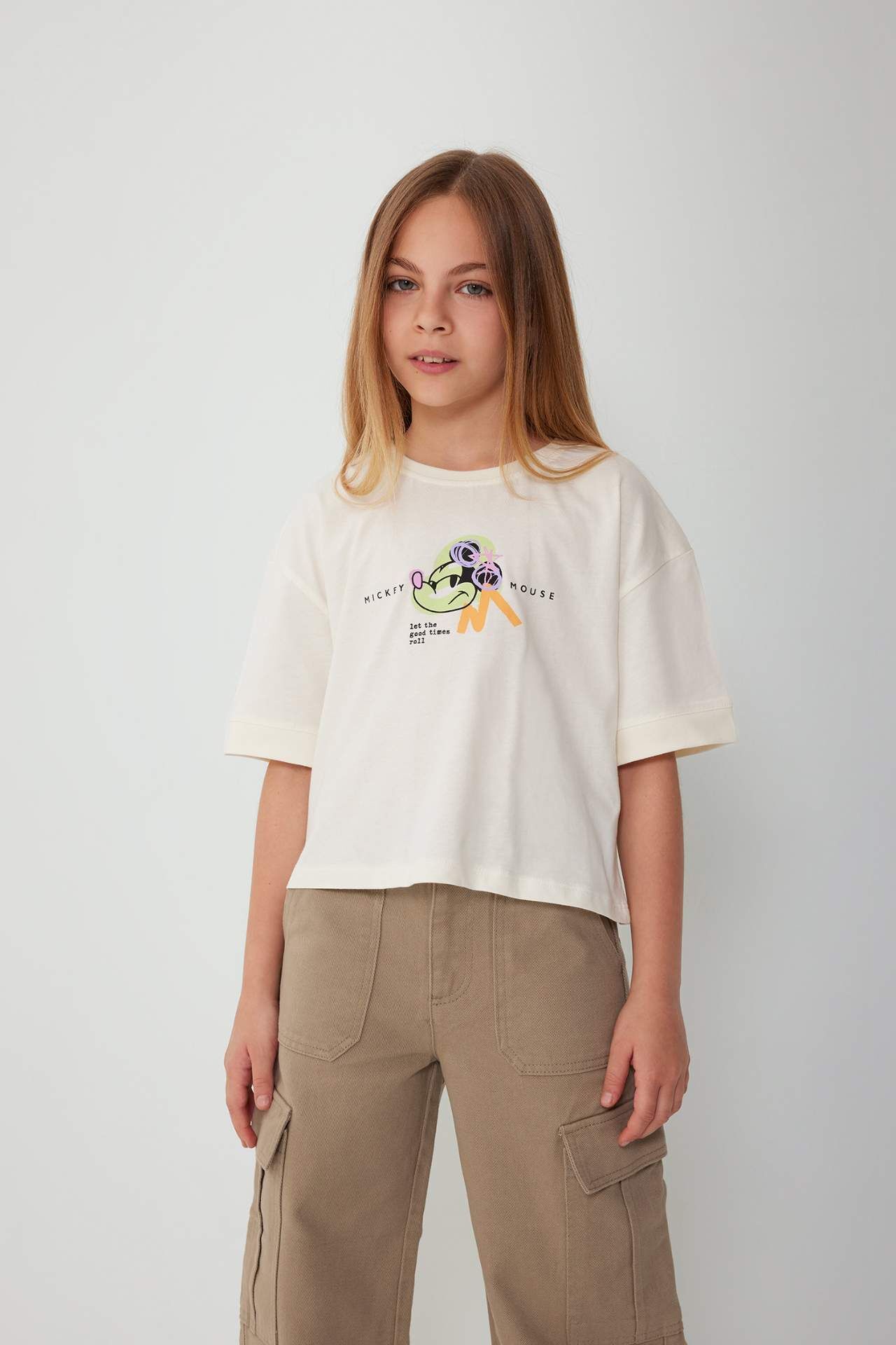 DeFacto Kız Çocuk Disney Mickey Mouse &Friends Crop Kısa Kollu Tişört