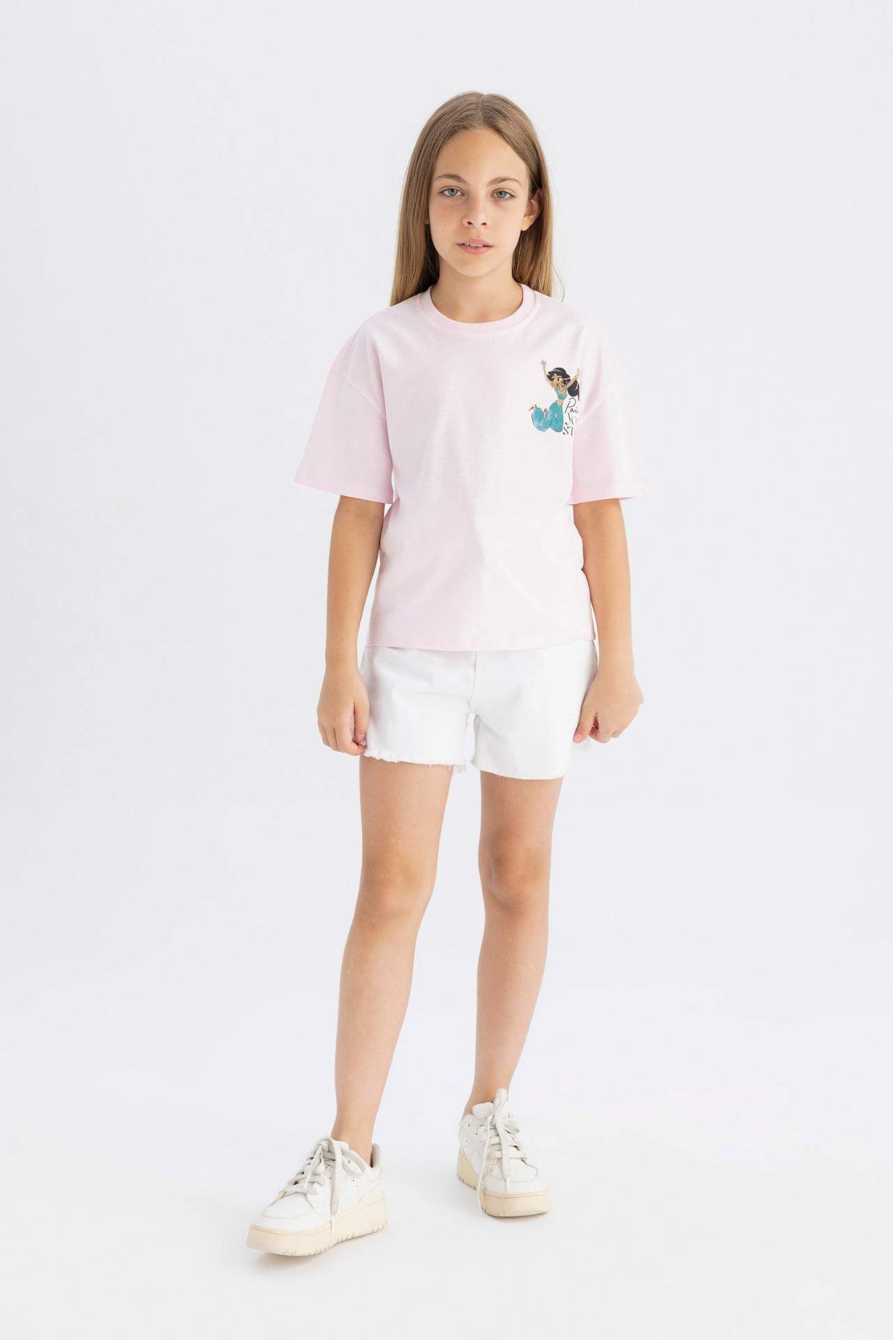 Kız Çocuk Disney Prenses Relax Fit Kısa Kollu Tişört: Zarif ve rahat bir seçenek. Disney prensesleriyle süslenmiş bu tişört, küçük prensesler için mükemmel bir seçim. Rahat kesimi ve kısa kollu tasarımıyla özgürce hareket etmelerine olanak tanır. Kaliteli kumaşıyla hem şık hem de konforlu bir görünüm sunar. Pamuk 100%,Pamuk 100%