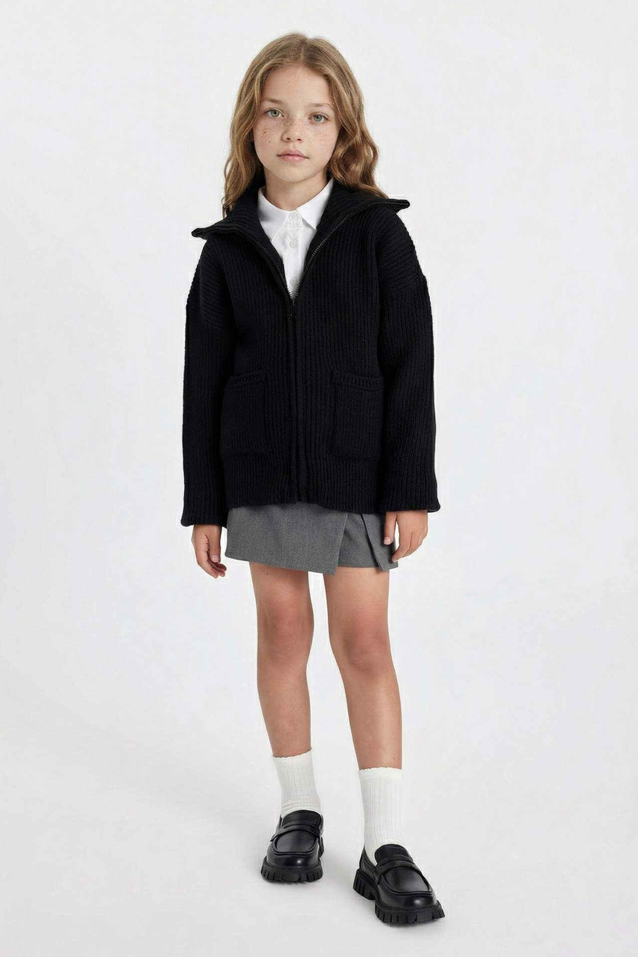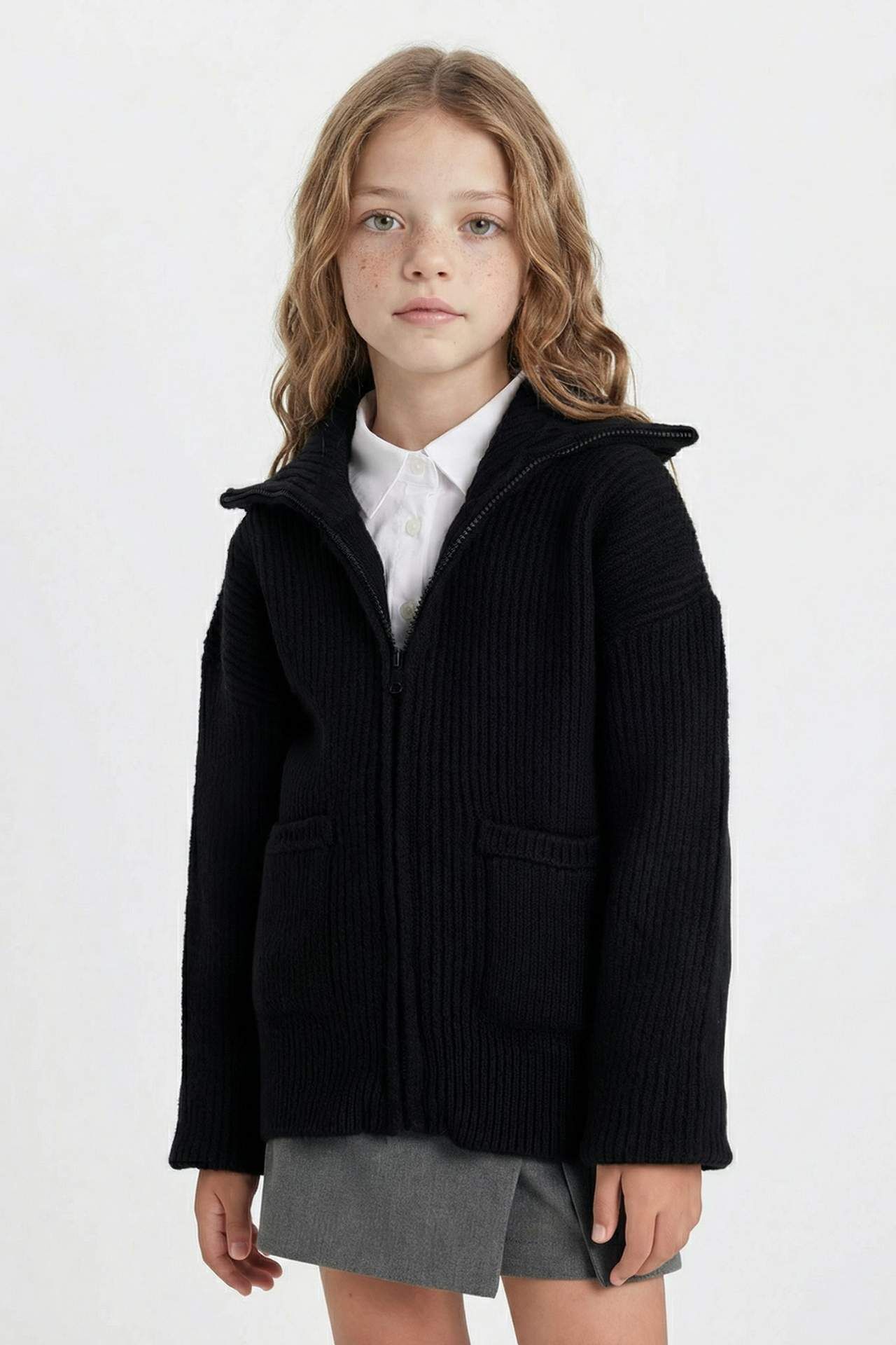 DeFactoFit Kız Çocuk Fermuarlı Siyah Okul Hırkası