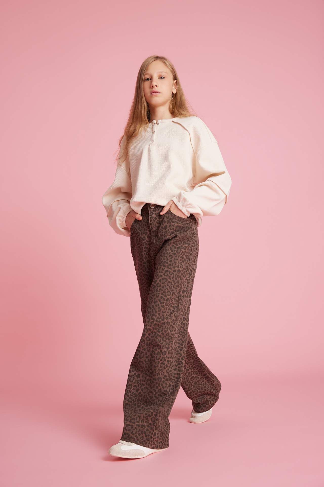 Leopar deseniyle dikkat çeken Kız Çocuk Flare Fit İspanyol Paça Pantolon, trend görünümüyle stil sahibi miniklere özel tasarlandı. Esnek yapısıyla rahat hareket imkânı sunar, günlük kombinlere şıklık katar. Pamuk 100%,Pamuk 100%,Pamuk 100%,Pamuk 100%,Pamuk 100%,Pamuk 100%,Pamuk 100%