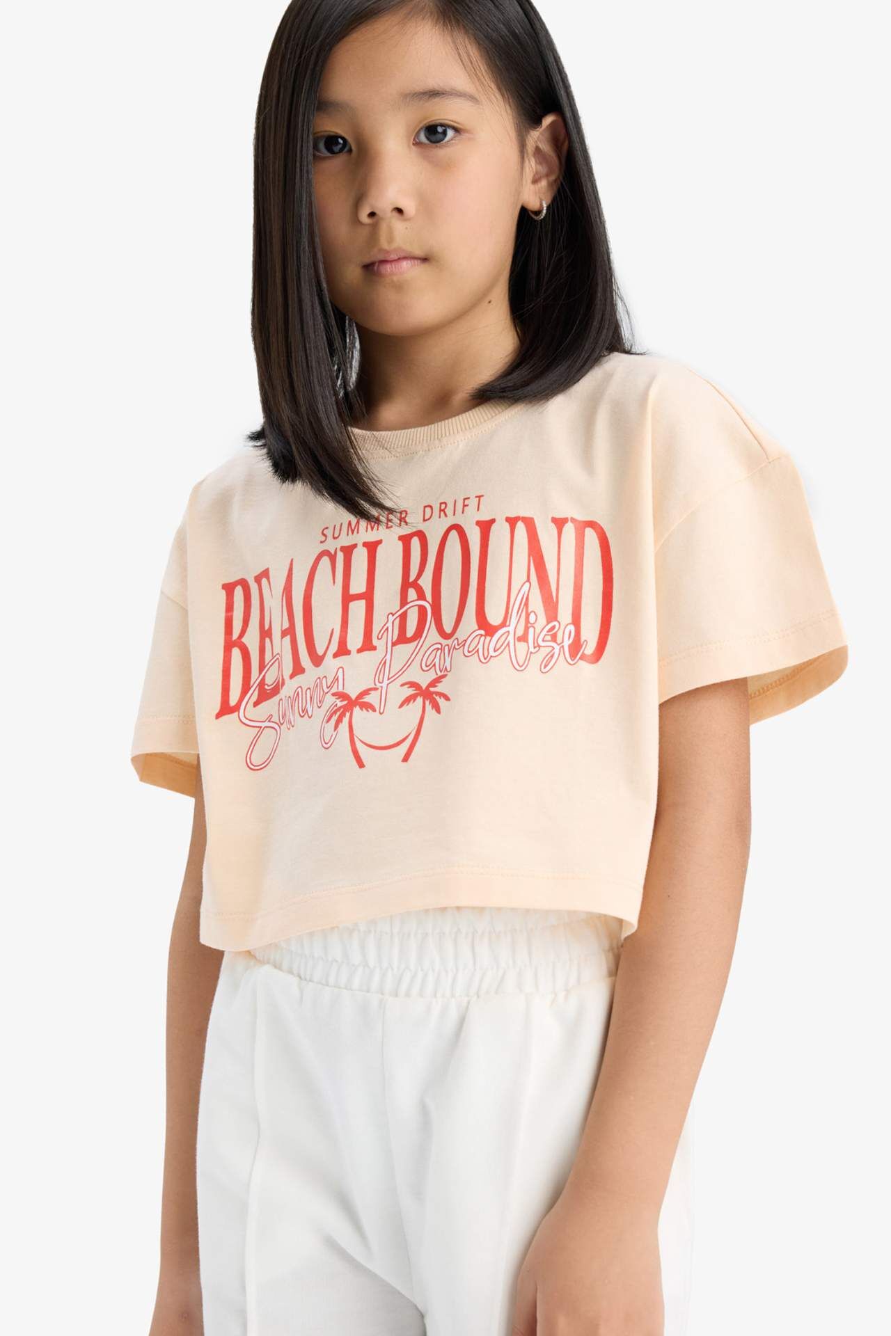 DeFacto Kız Çocuk Full Crop Bisiklet Yaka Kısa Kollu Tişört E0385A825SMOG96