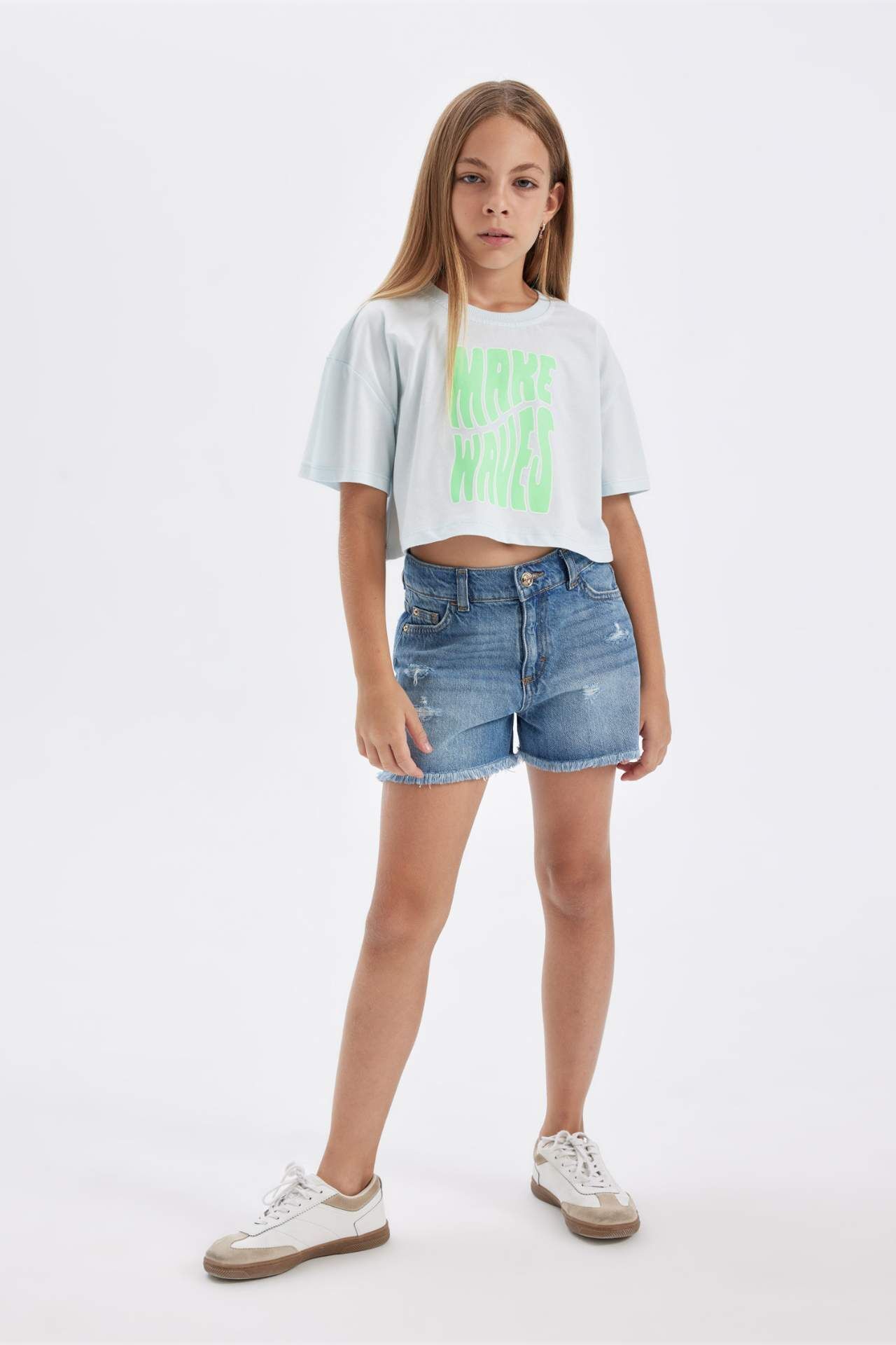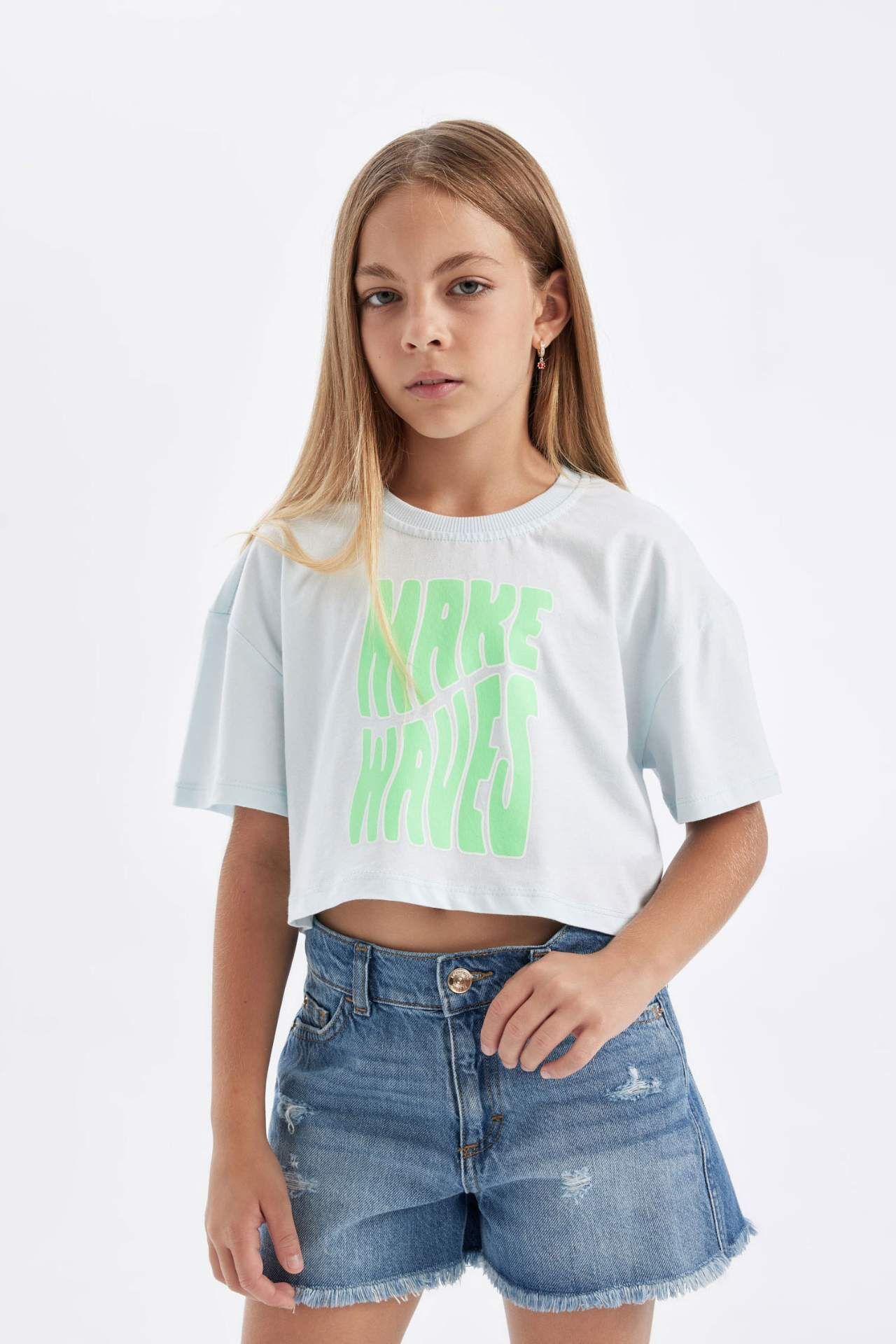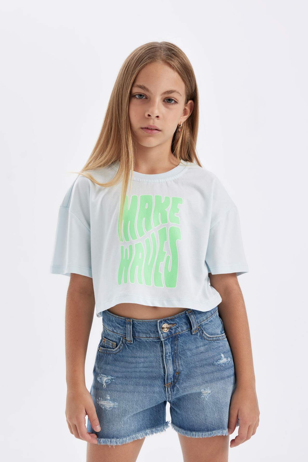 DeFactoFit Kız Çocuk Full Crop Bisiklet Yaka Slogan Baskılı Kısa Kollu Tişört D0869A824HSBE738