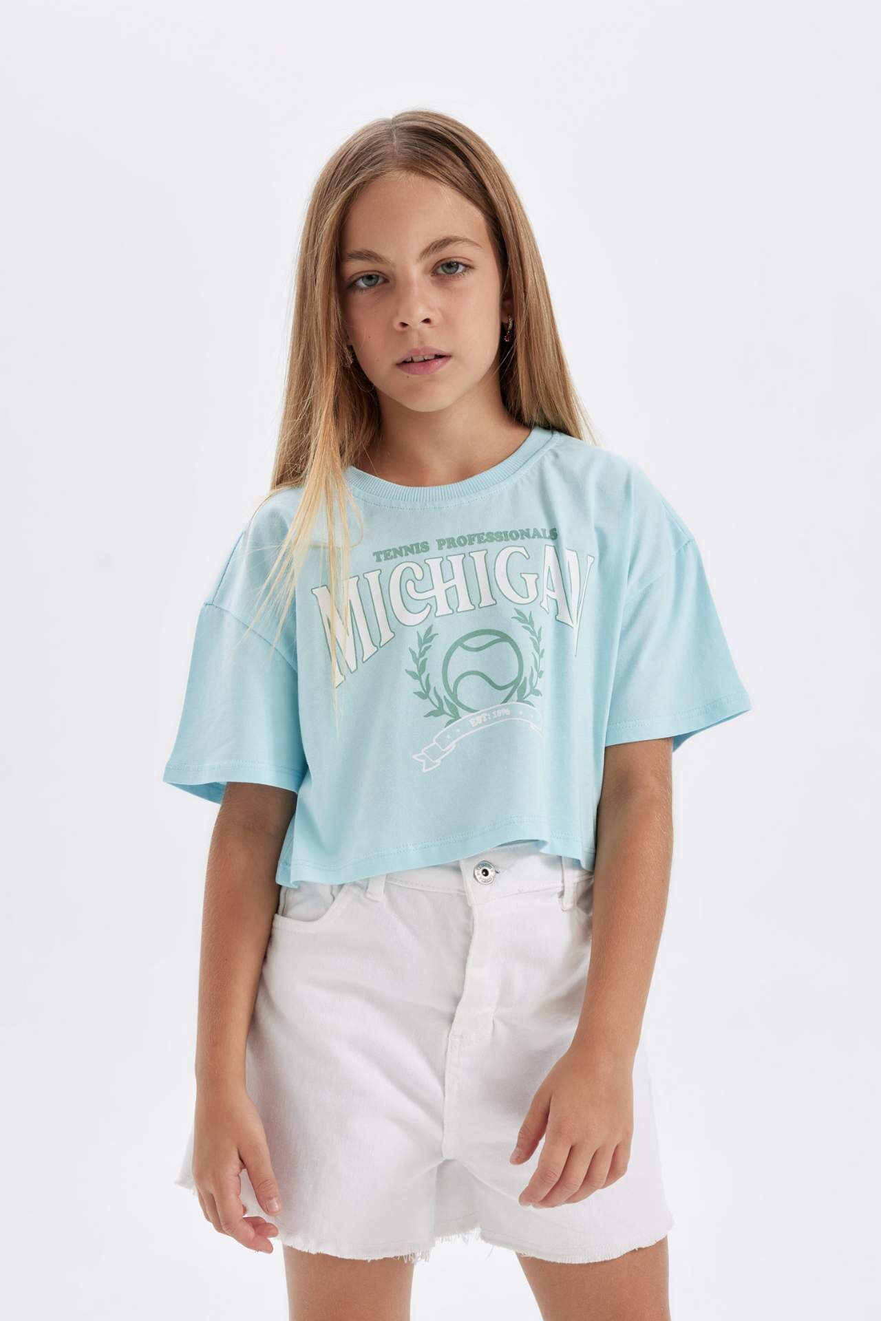 DeFactoFit Kız Çocuk Full Crop Bisiklet Yaka Slogan Baskılı Kısa Kollu Tişört D0869A824HSTR400