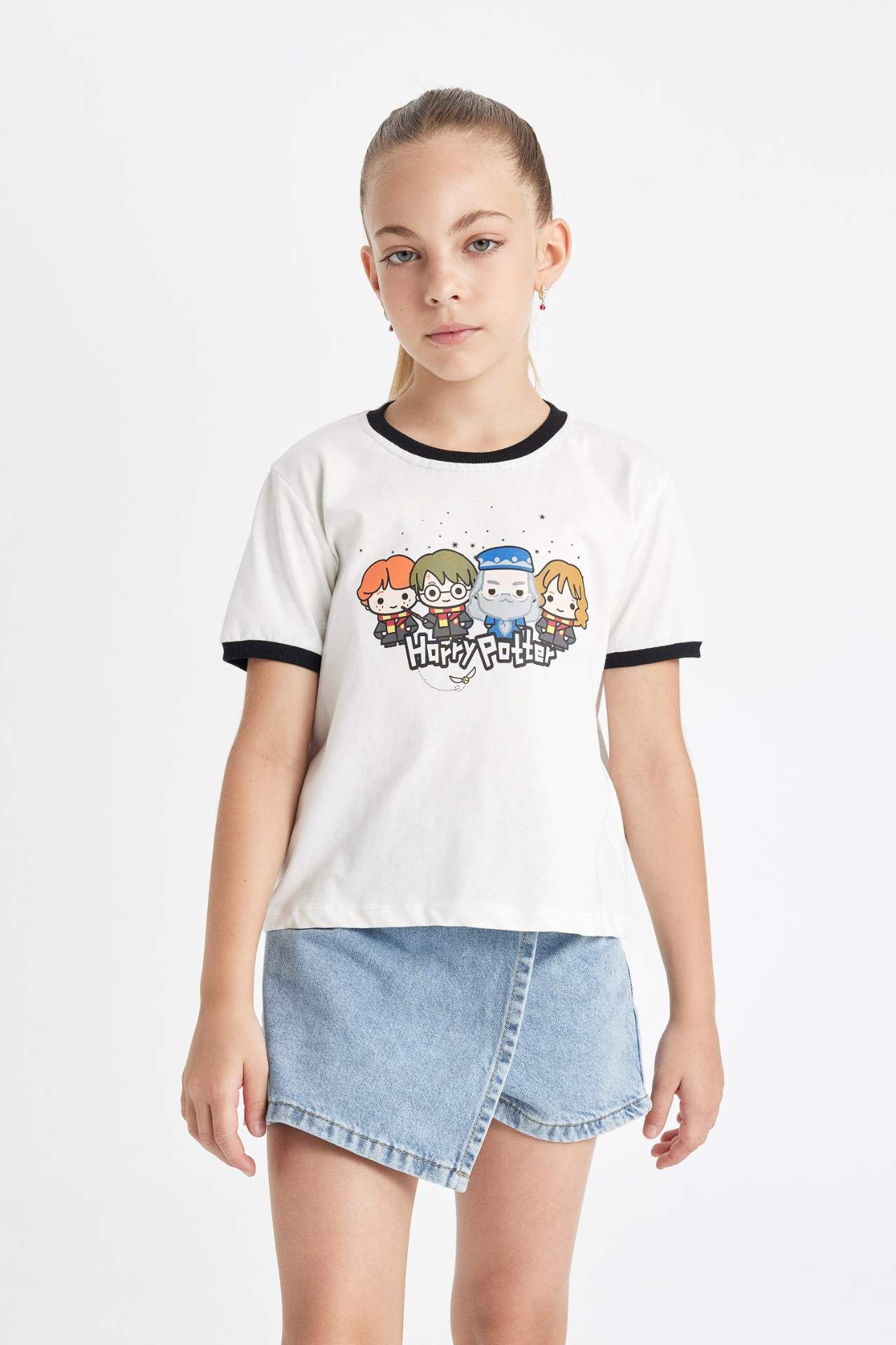 DeFactoFit Kız Çocuk Harry Potter Bisiklet Yaka Kısa Kollu Tişört