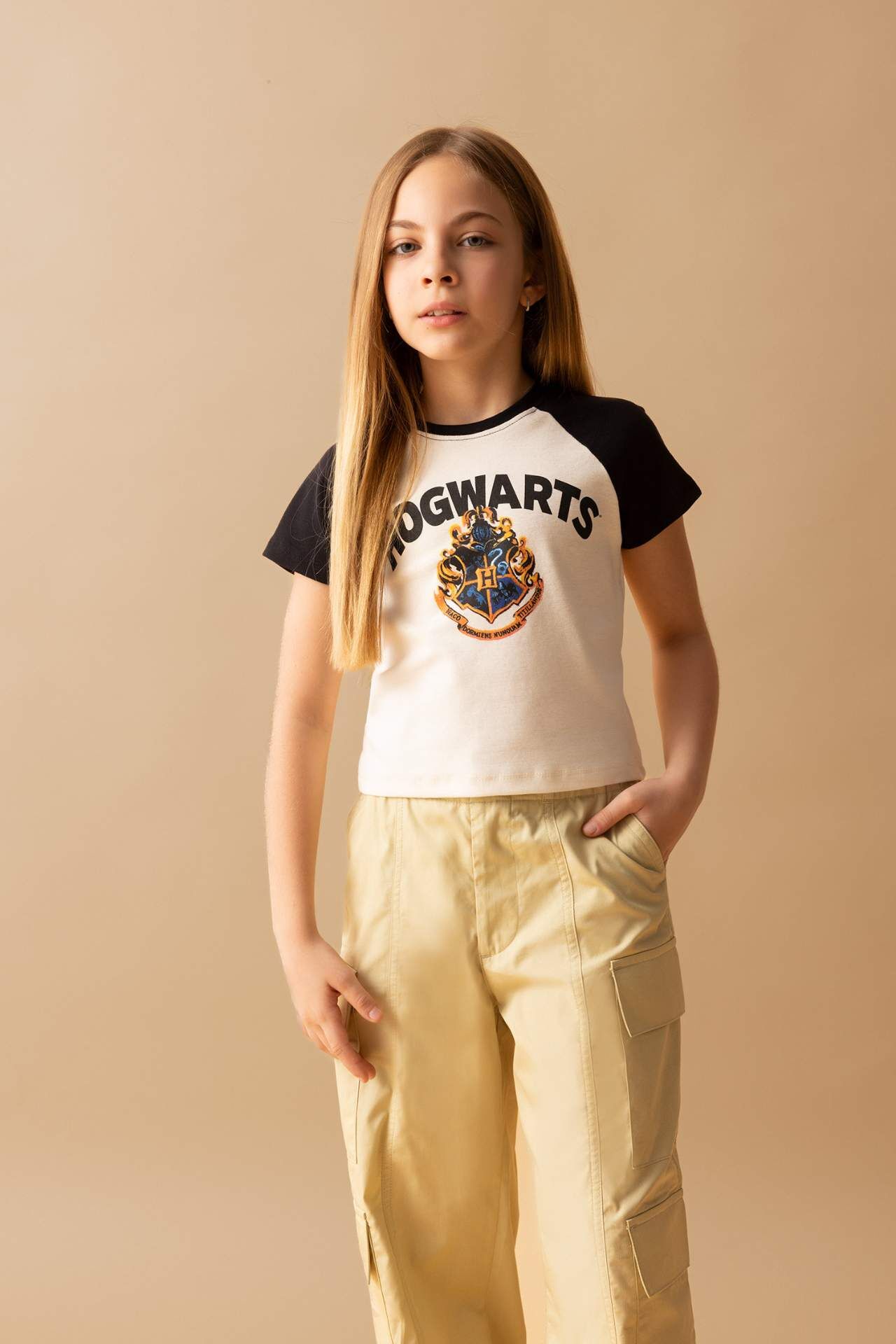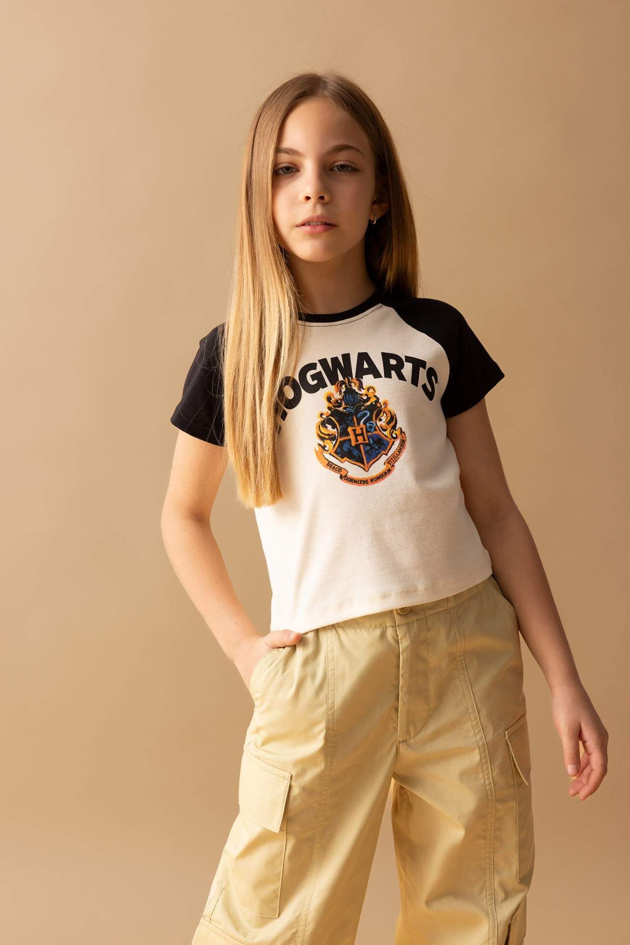 DeFacto Kız Çocuk Harry Potter Crop Ribana Kısa Kollu Tişört
