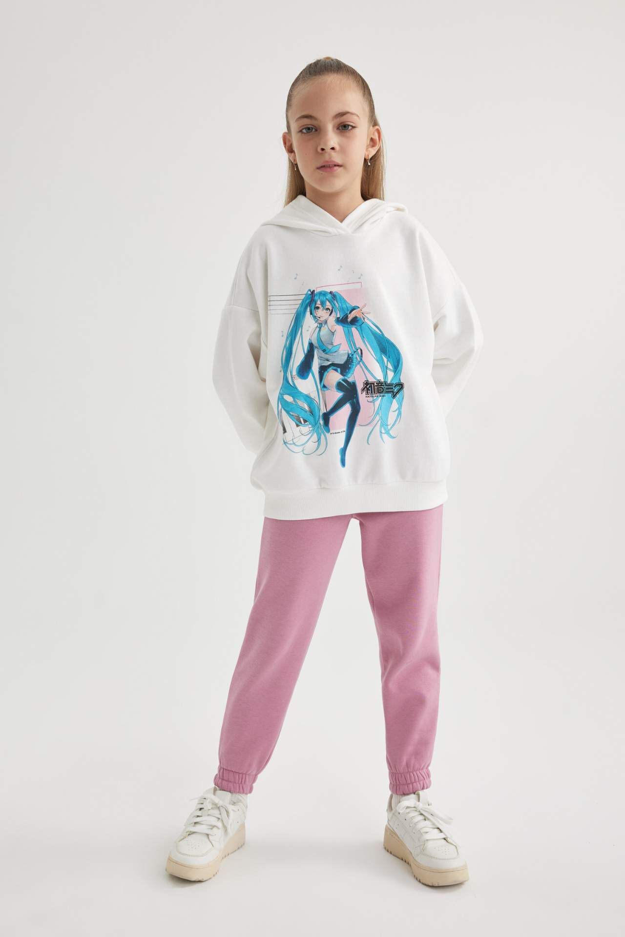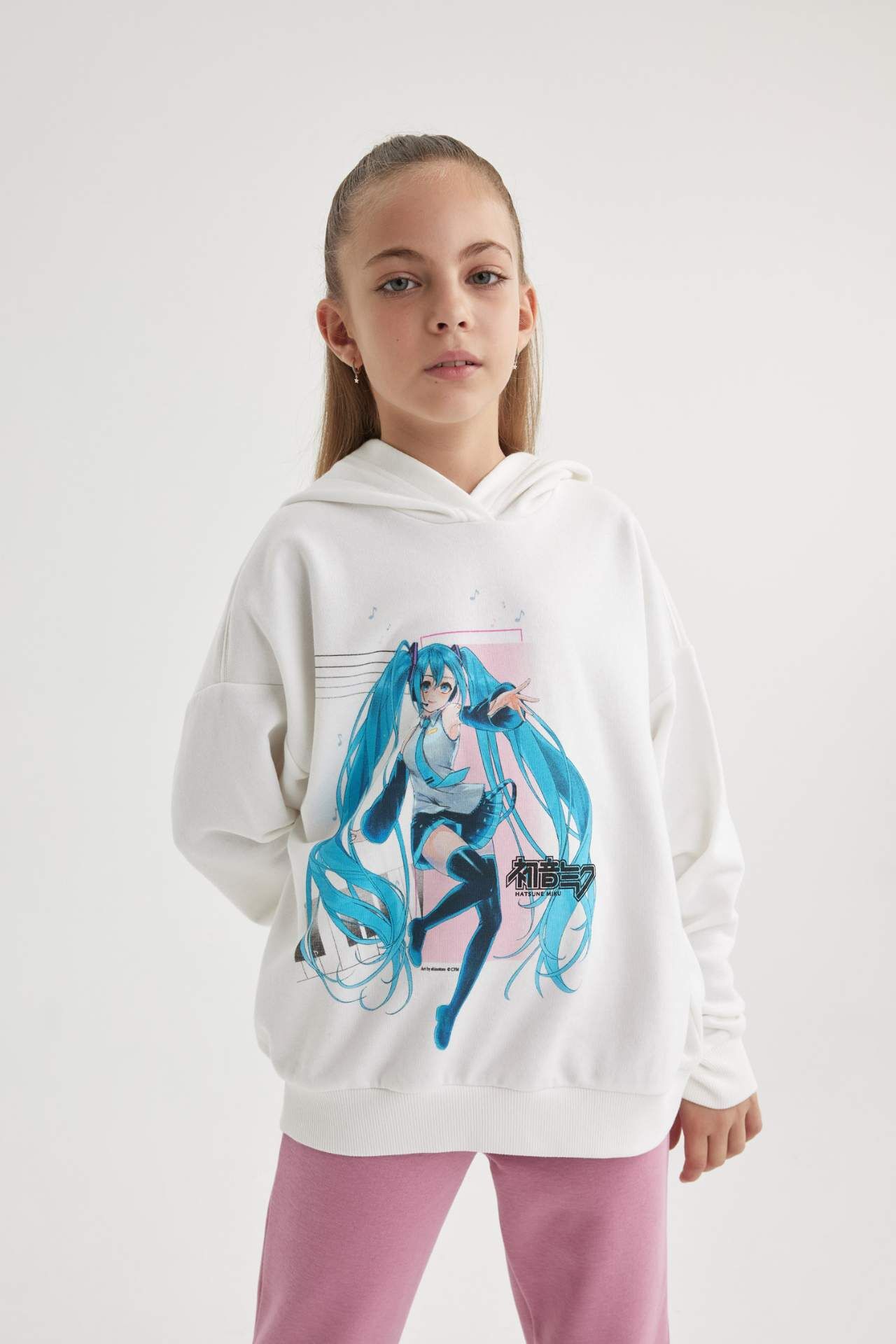 DeFacto Kız Çocuk Hatsune Miku Oversize Fit Kapüşonlu Sweatshirt