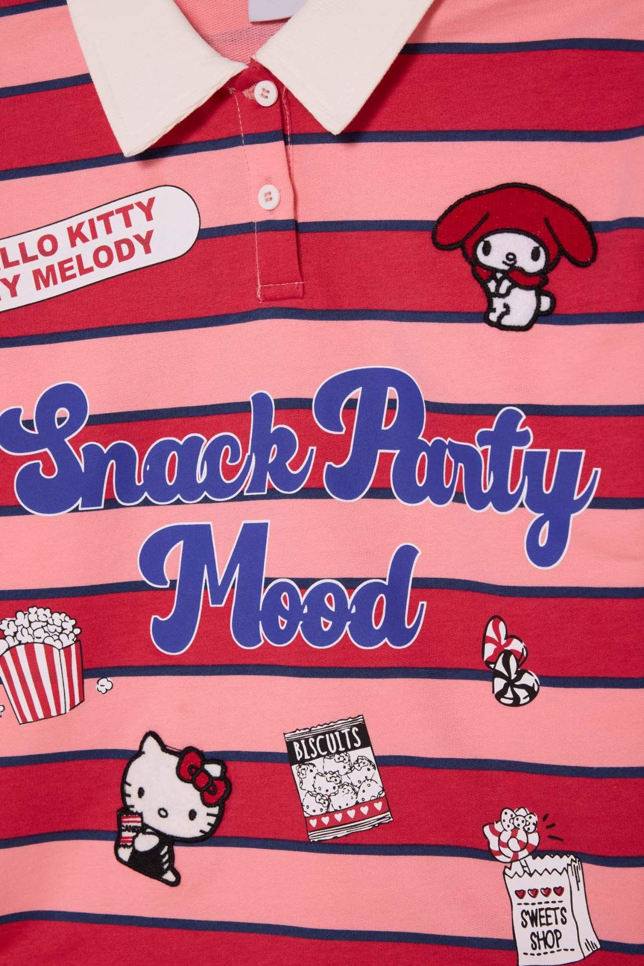 Kız Çocuk Hello Kitty Polo Yaka Sweatshirt Kumaşı Sweatshirt