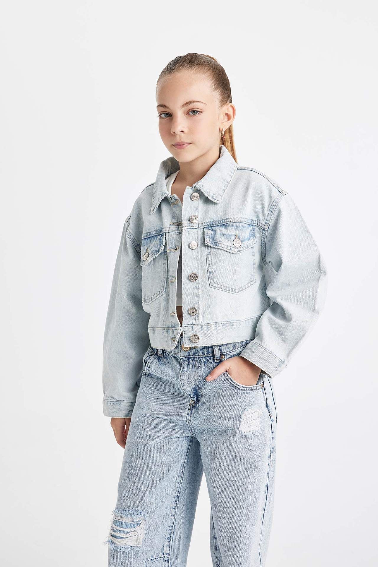 DeFacto Kız Çocuk Jean Ceket C7484A824AUNM39