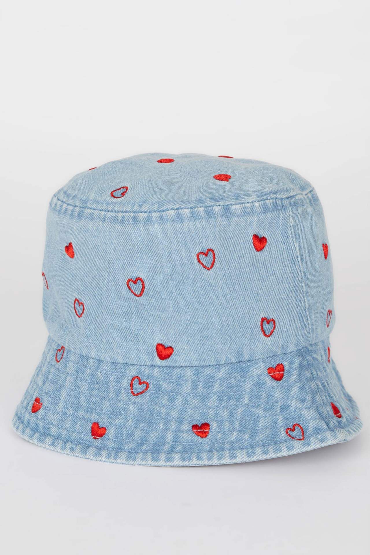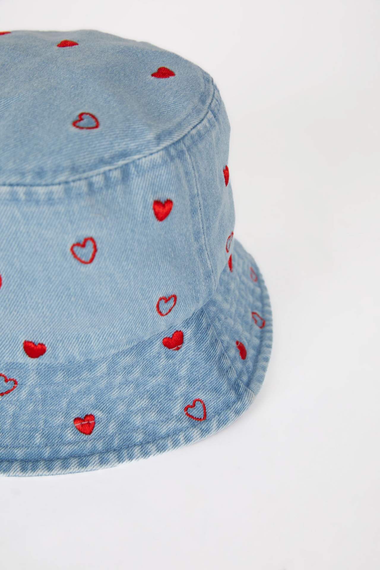 Kız Çocuk Kalpli Jean Bucket Şapka