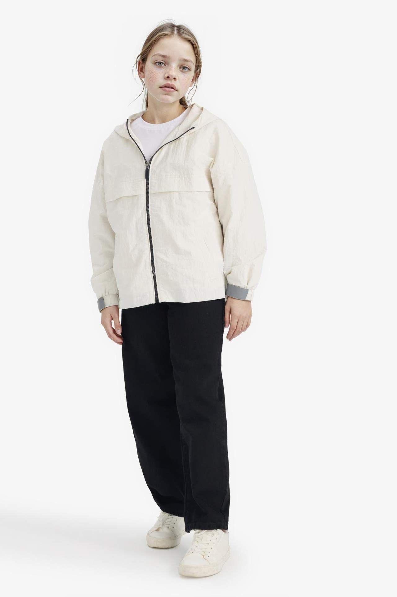 Su itici özelliği ve kırinkıl dokusuyla tasarlanmış kapüşonlu yağmurluk, kız çocuklar için hafif ve rahat bir kullanım sunar. Yağmurlu günlerde şık ve pratik bir koruma sağlar. Poliester 100%,Naylon 100% Manken Bedeni: Göğüs: 0 Boy: 1,35 Basen: 0 Bel: 0