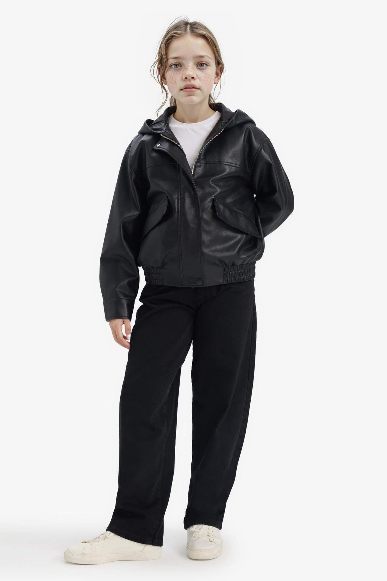Kız Çocuk Kapüşonlu Suni Deri Mont