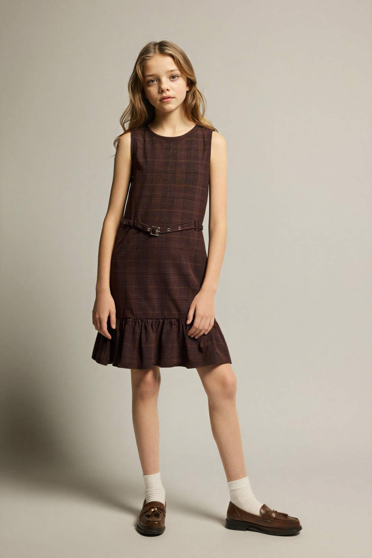 Kız çocuklar için tasarlanan kareli kemerli kolsuz elbise, şık ve modern tasarımıyla dikkat çeker. Rahat kesimi ve kemer detayı sayesinde hem konforlu hem de stil sahibi bir görünüm sunar. Elastan 5%,Viskoz 32%,Poliester 63%