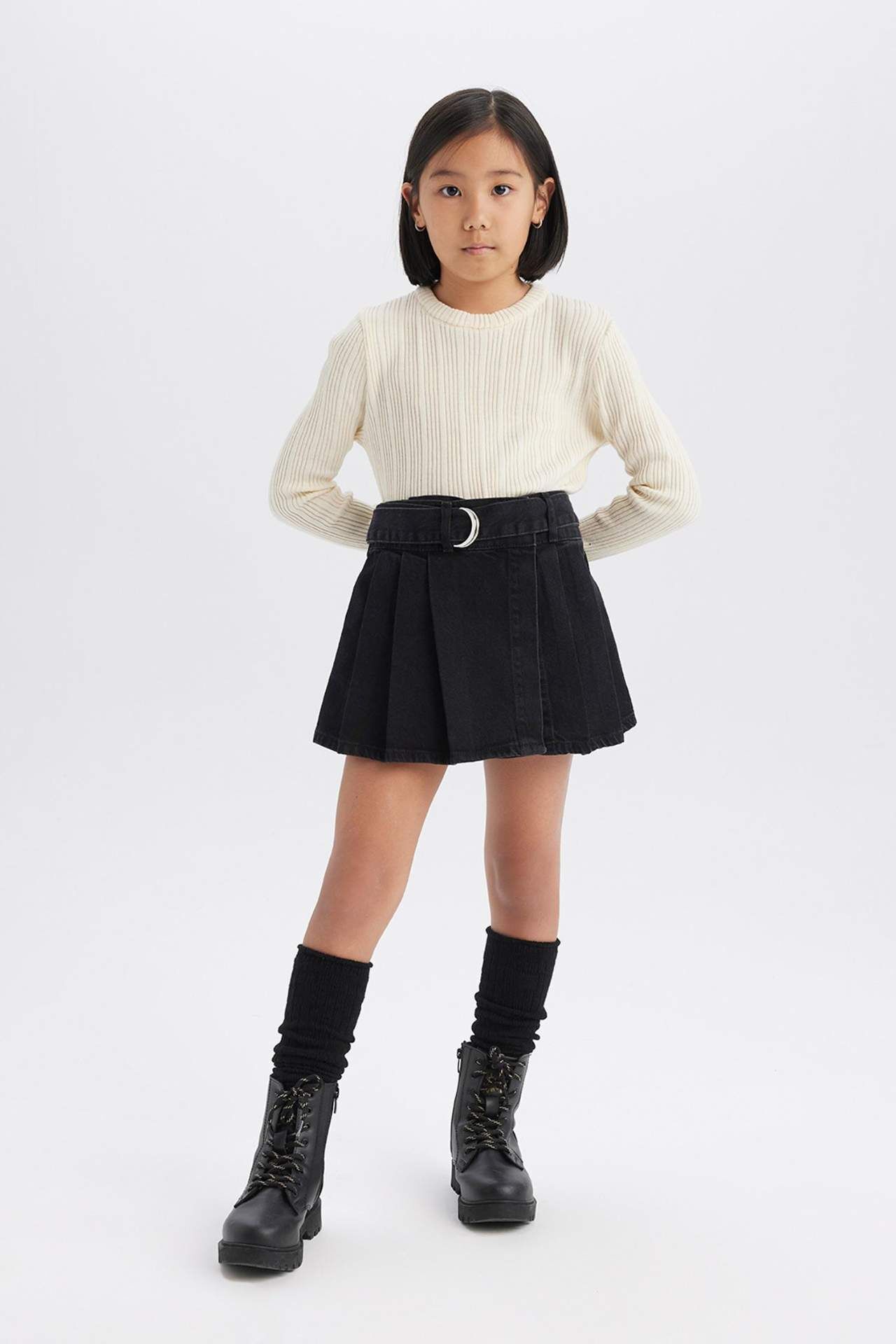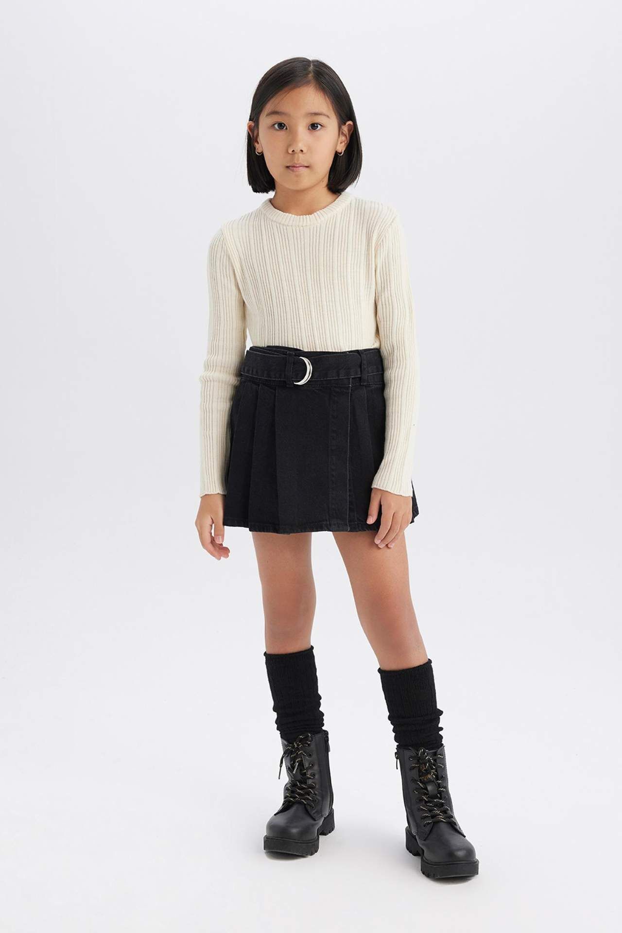 DeFacto Kız Çocuk Kemerli Jean Şort Etek
