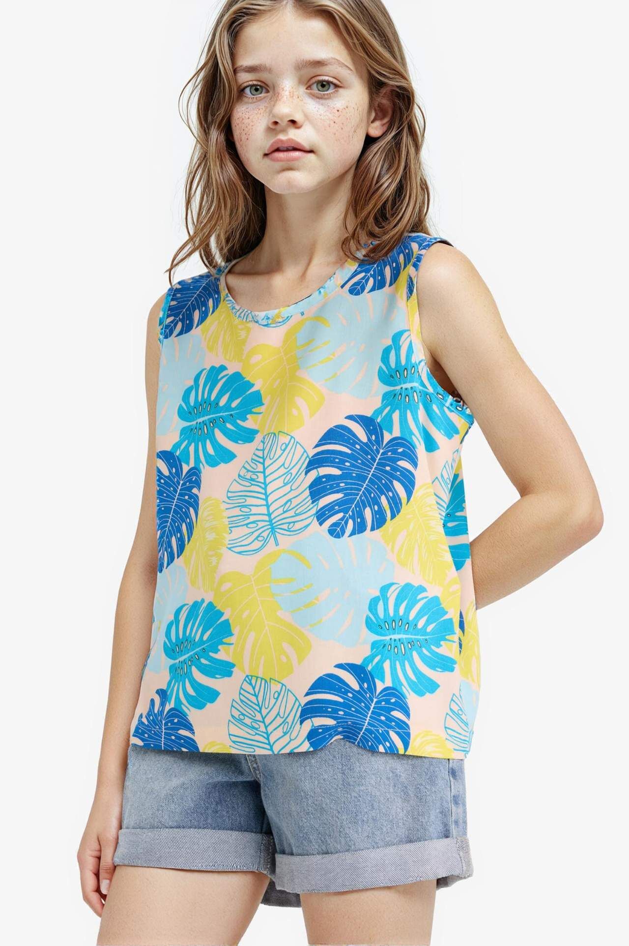 Kız çocuk bisiklet yaka desenli kolsuz bluz, renkli ve hareketli desenleriyle yaz kombinlerine enerjik bir dokunuş katar. Hafif ve nefes alabilen kumaşıyla sıcak günlerde konfor sağlar. Viskoz 100%,Viskoz 100%,Viskoz 100%,Viskoz 100%,Viskoz 100%,Viskoz 100%,Viskoz 100%