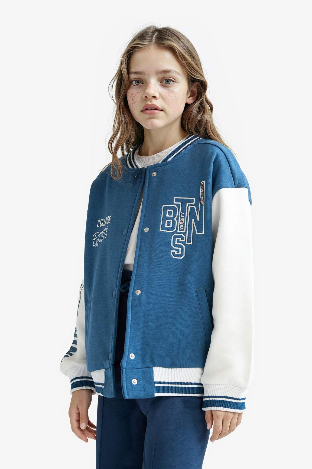 DeFacto Kız Çocuk Kolej Yaka Baskılı Kalın Bomber Hırka
