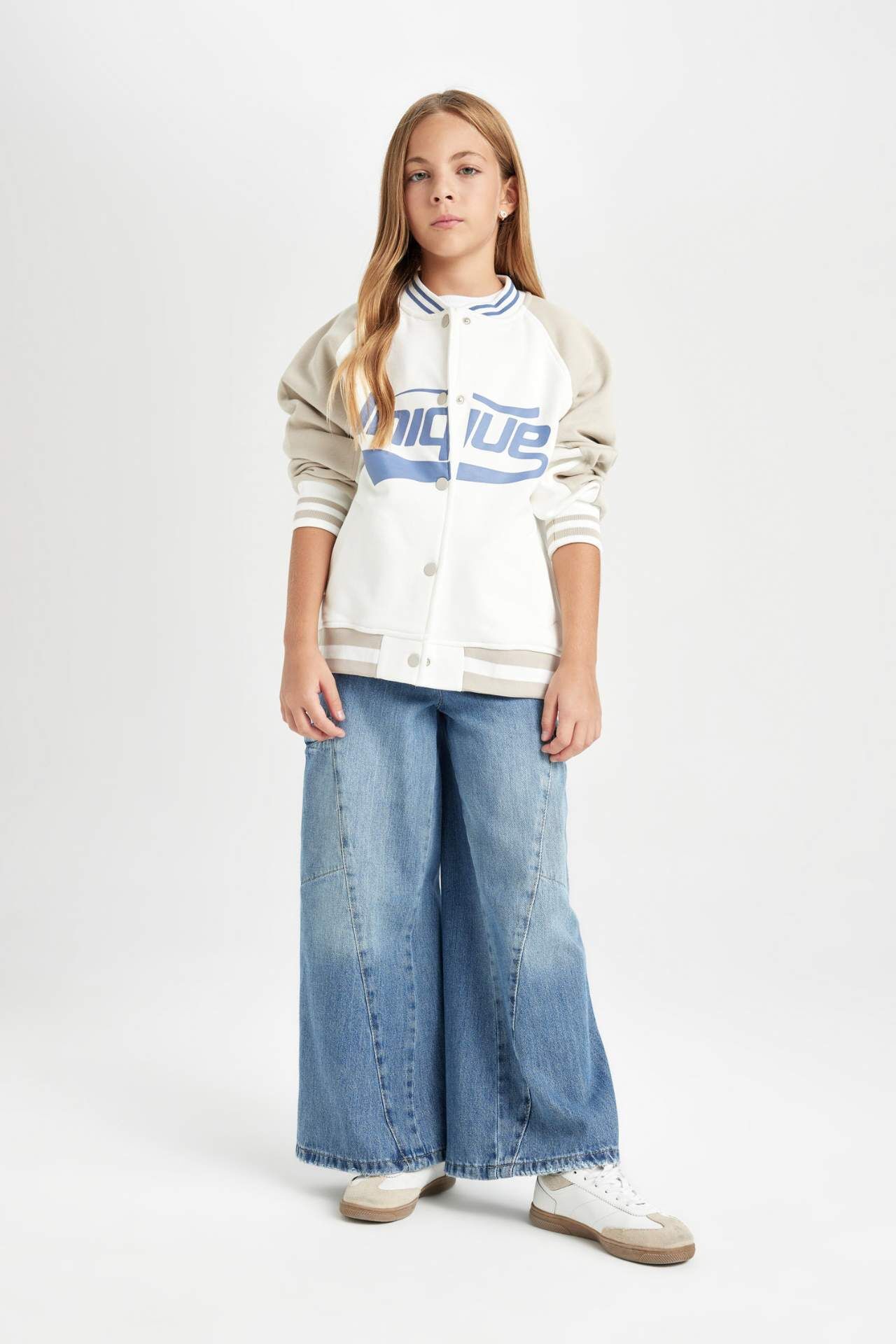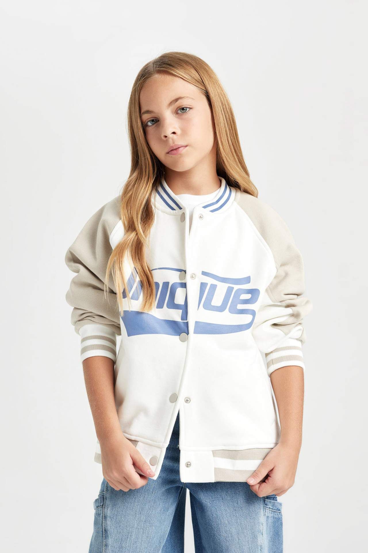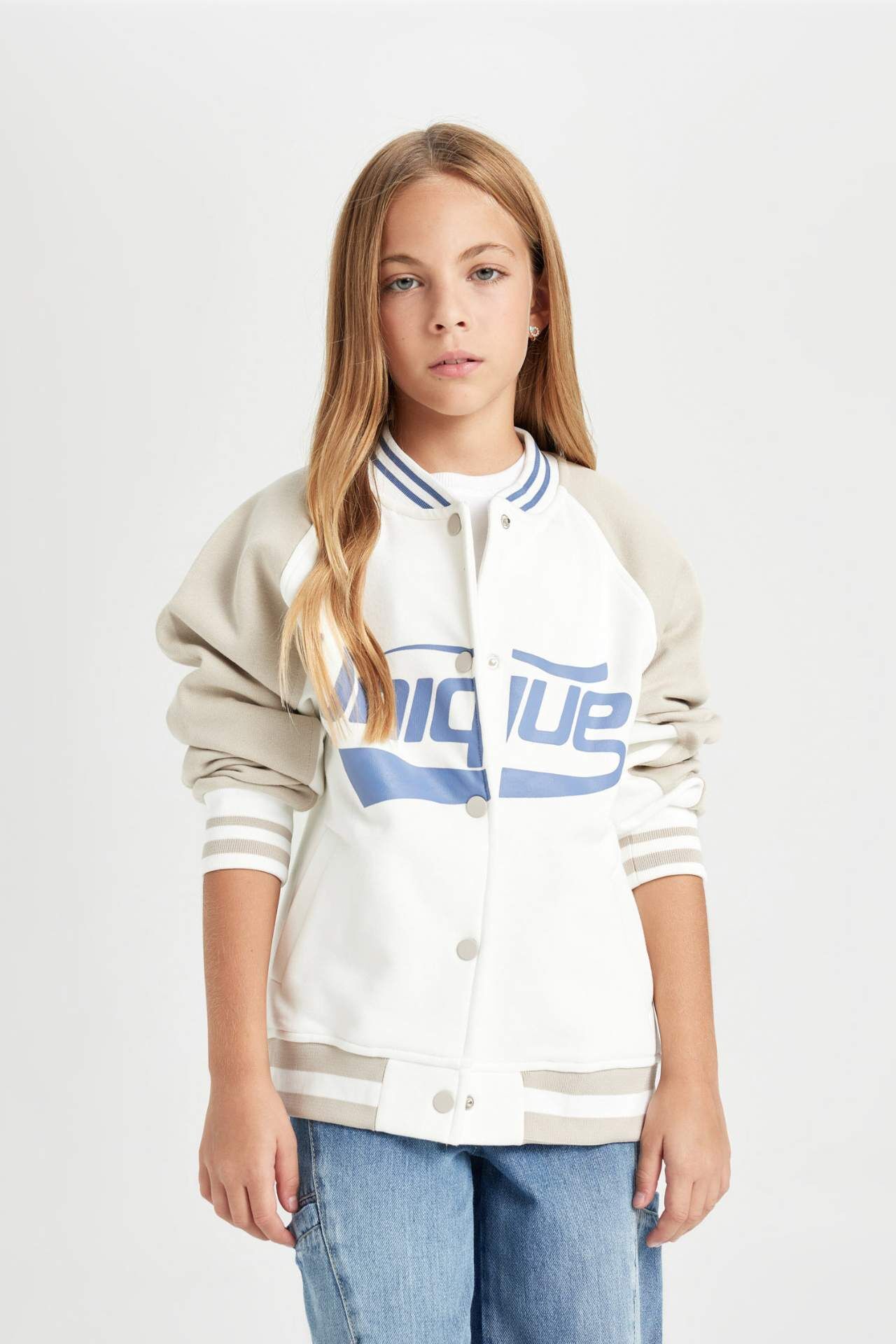 DeFacto Kız Çocuk Kolej Yaka Baskılı Kalın İçi Yumuşak Tüylü Bomber Hırka