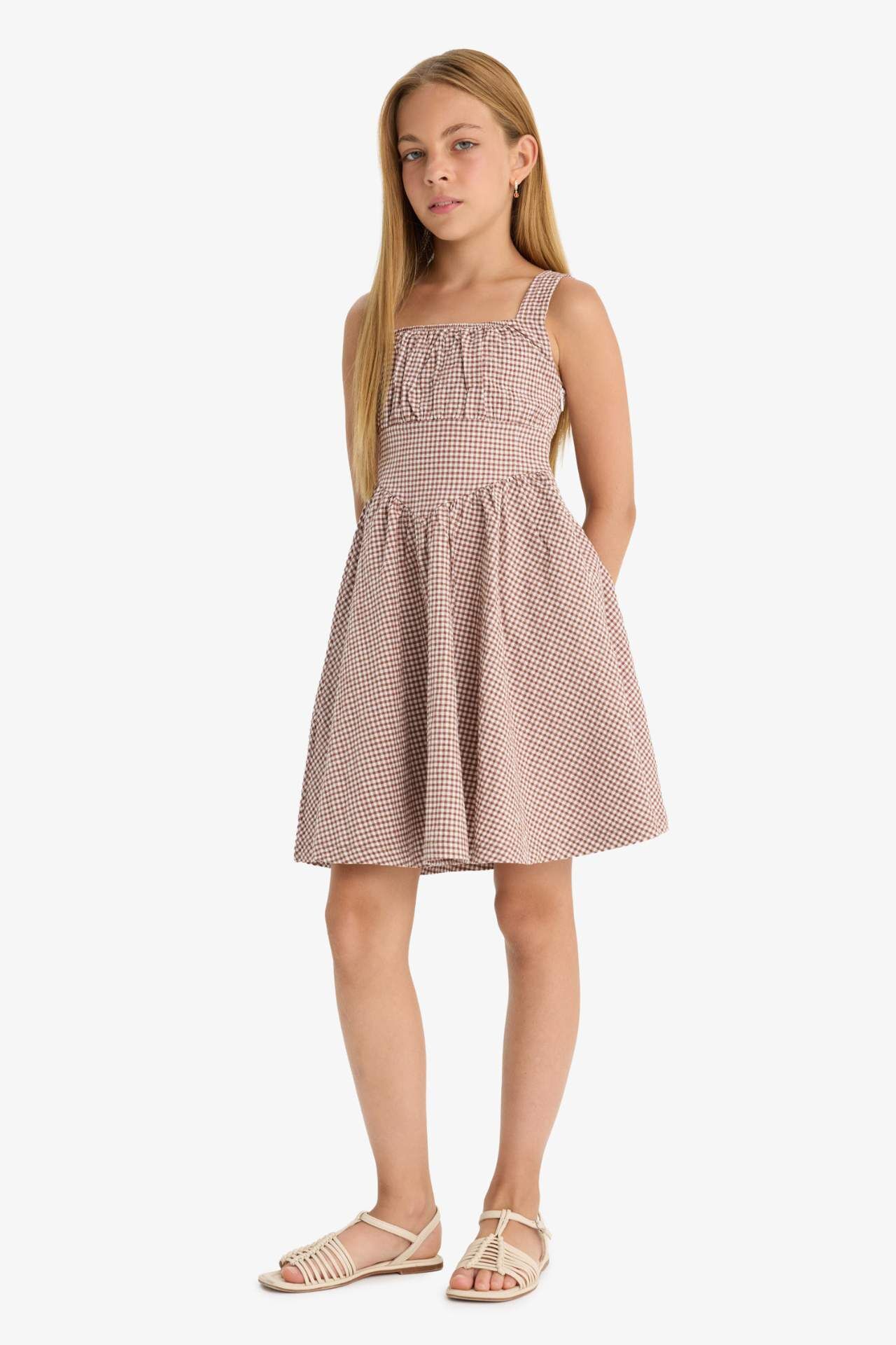 Kız Çocuk Krinkıl Viskon Kareli Askılı Elbise