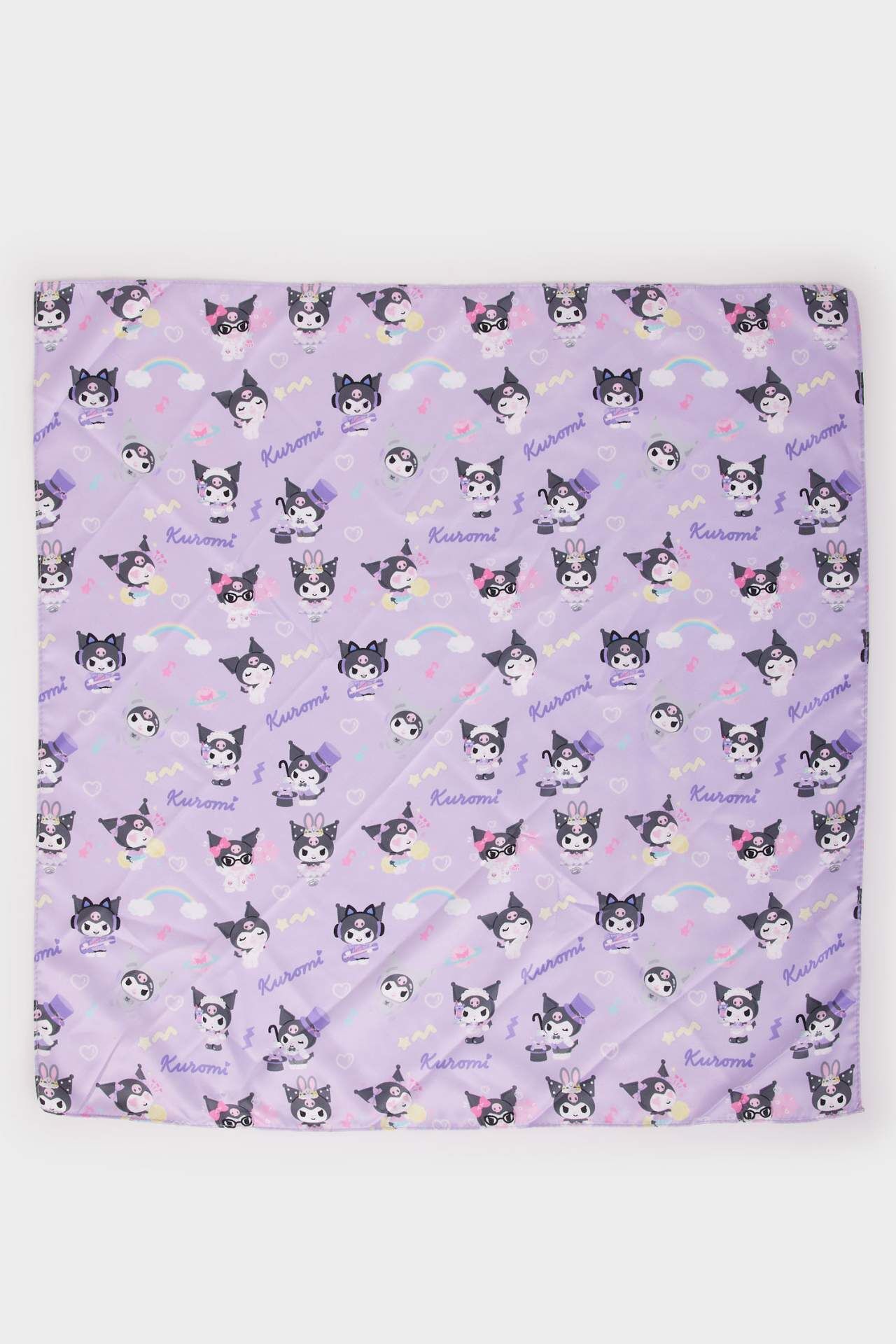 Parlak saten dokusuyla dikkat çeken Kuromi desenli şal, kız çocuklarının tarzına eğlenceli bir dokunuş katar. Özel günlerde ve günlük kombinlerde şıklığı tamamlayan zarif bir aksesuardır. Poliester 100%