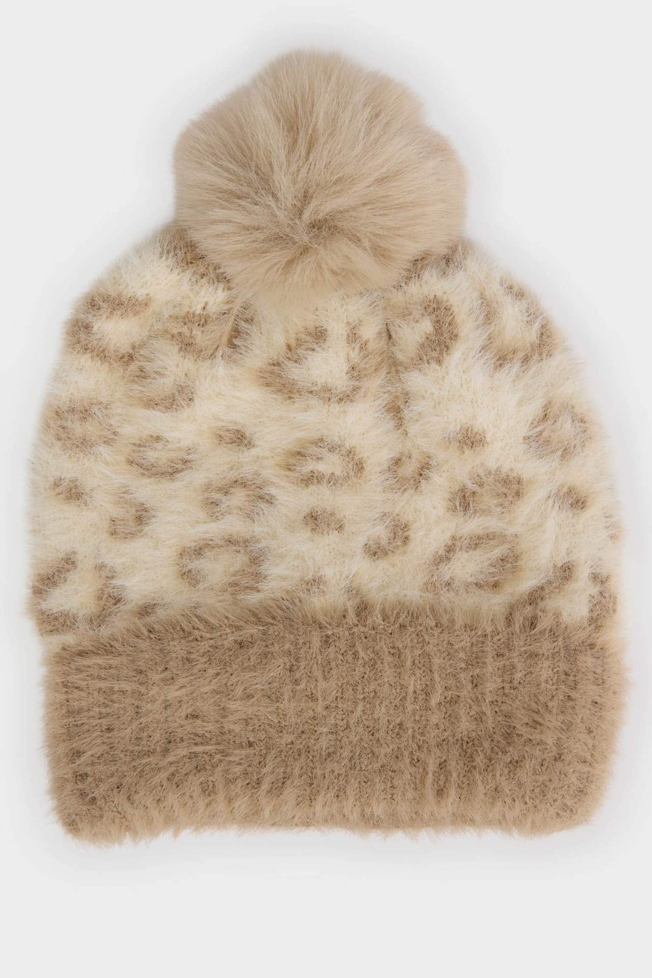 Kız Çocuk Leopar Desenli Ponponlu Triko Bere