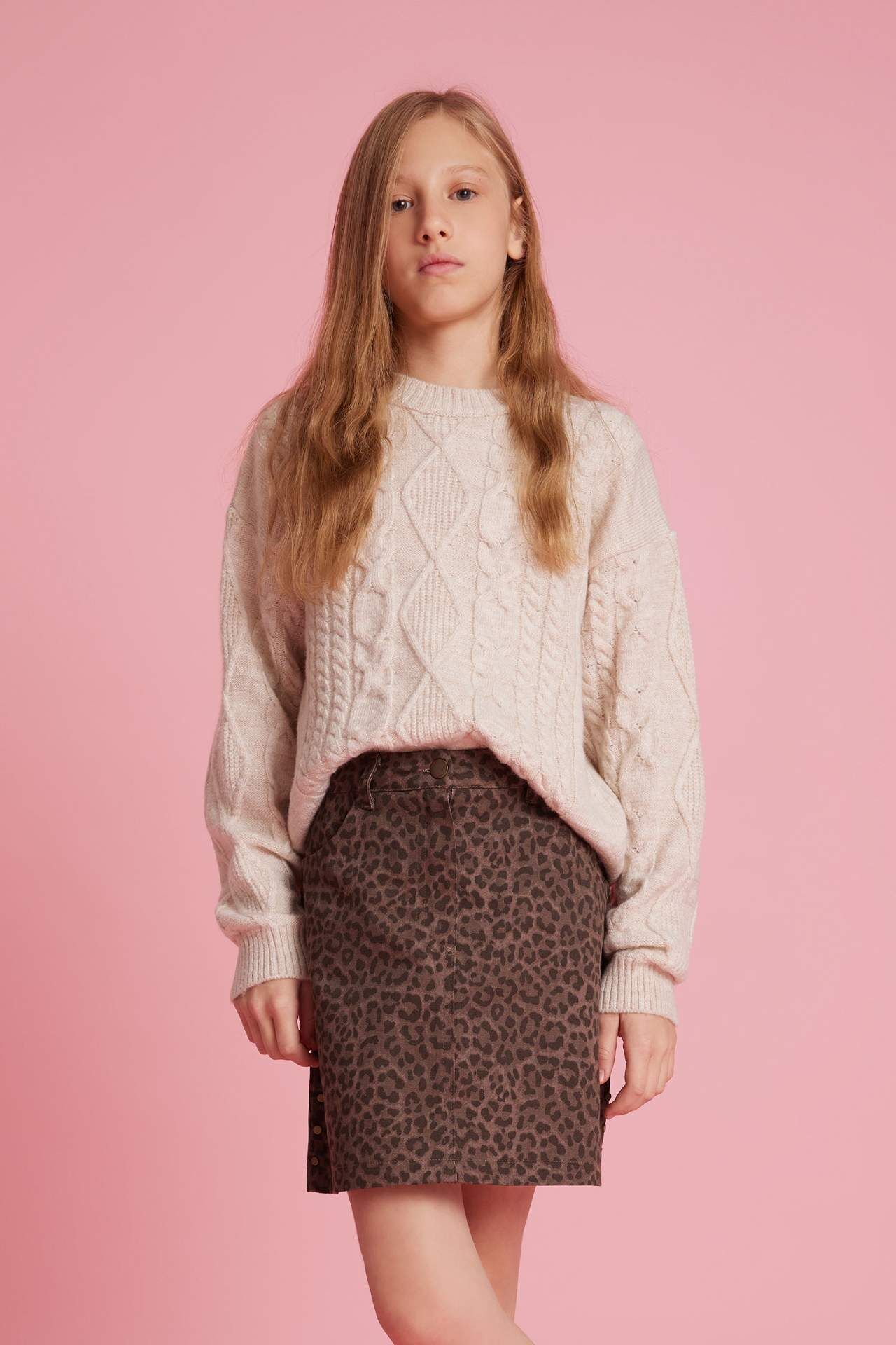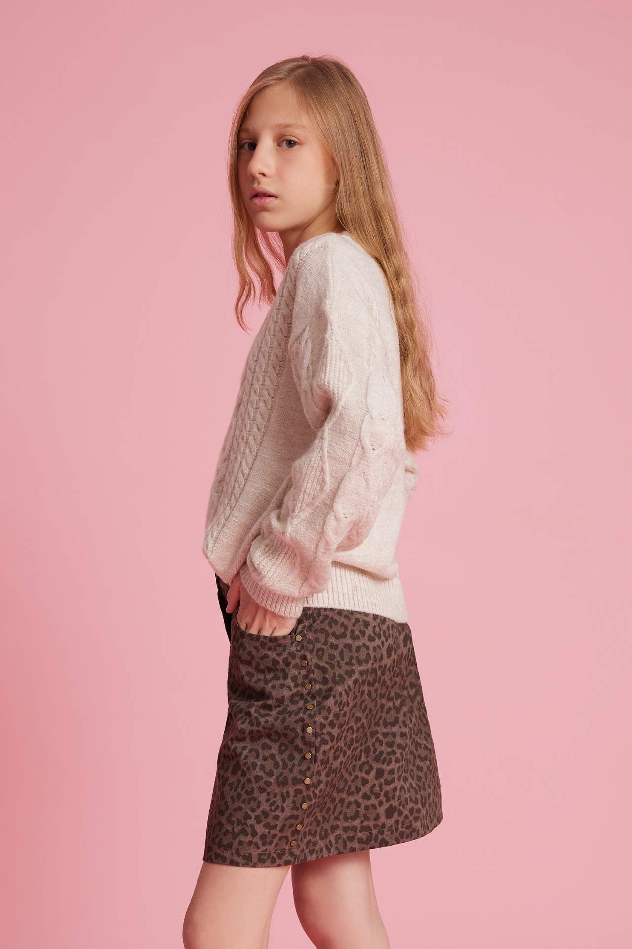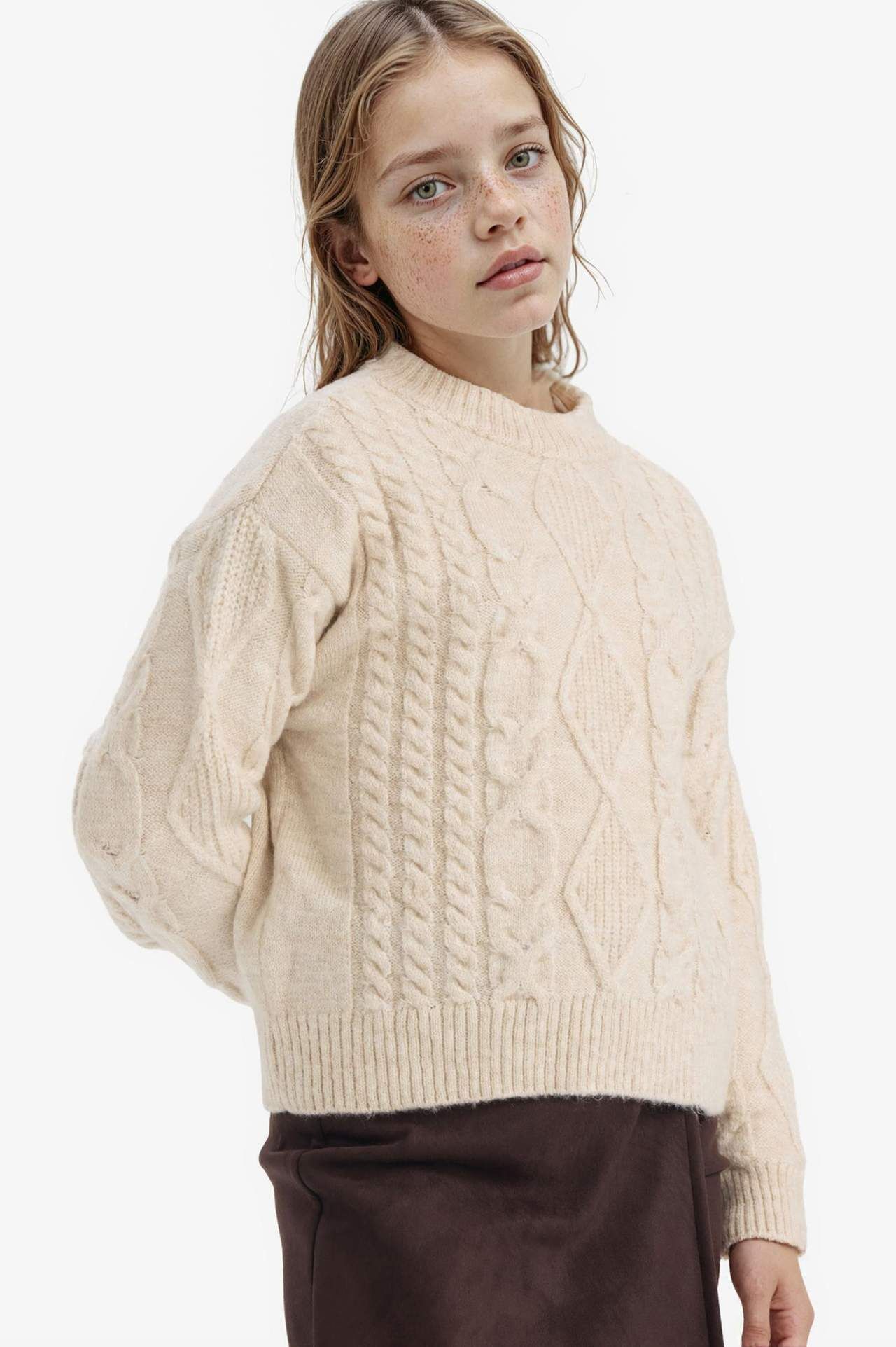 Kız Çocuk Loose Fit Bisiklet Yaka Kazak