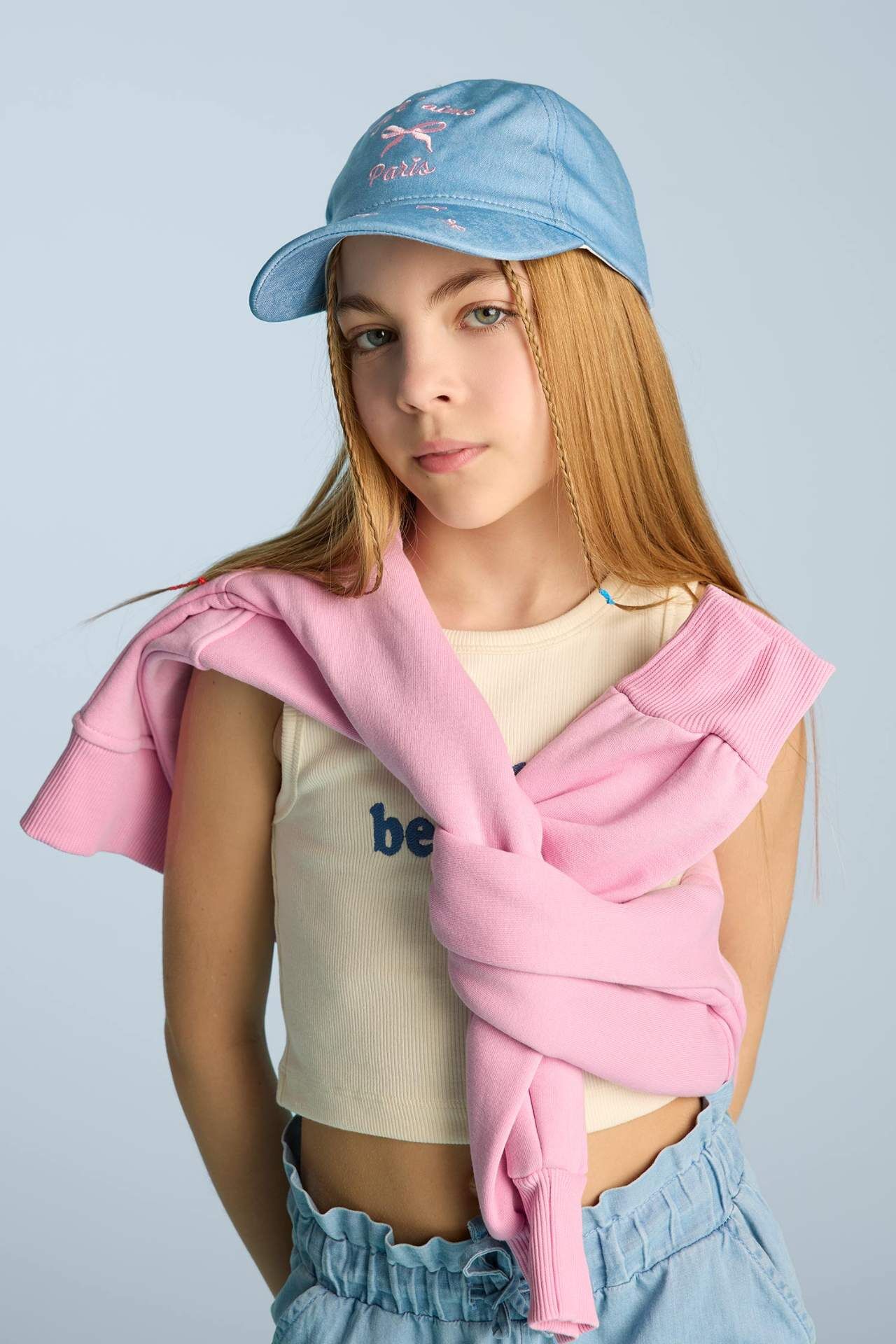 DeFacto Kız Çocuk Nakışlı Jean Görünümlü Cap Şapka