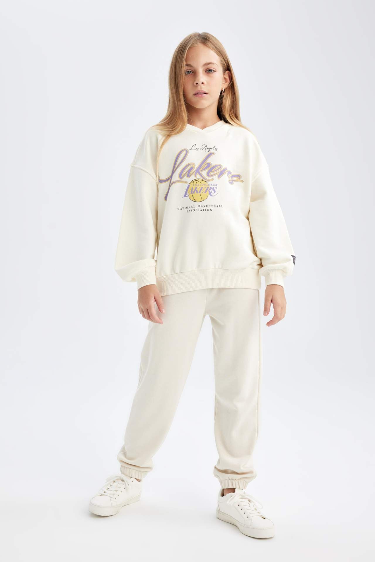 DeFacto Kız Çocuk NBA Los Angeles Lakers Oversize Fit Bisiklet Yaka Sweatshirt