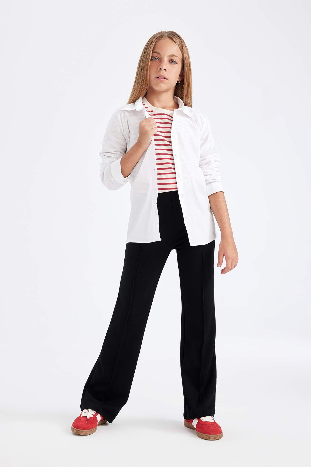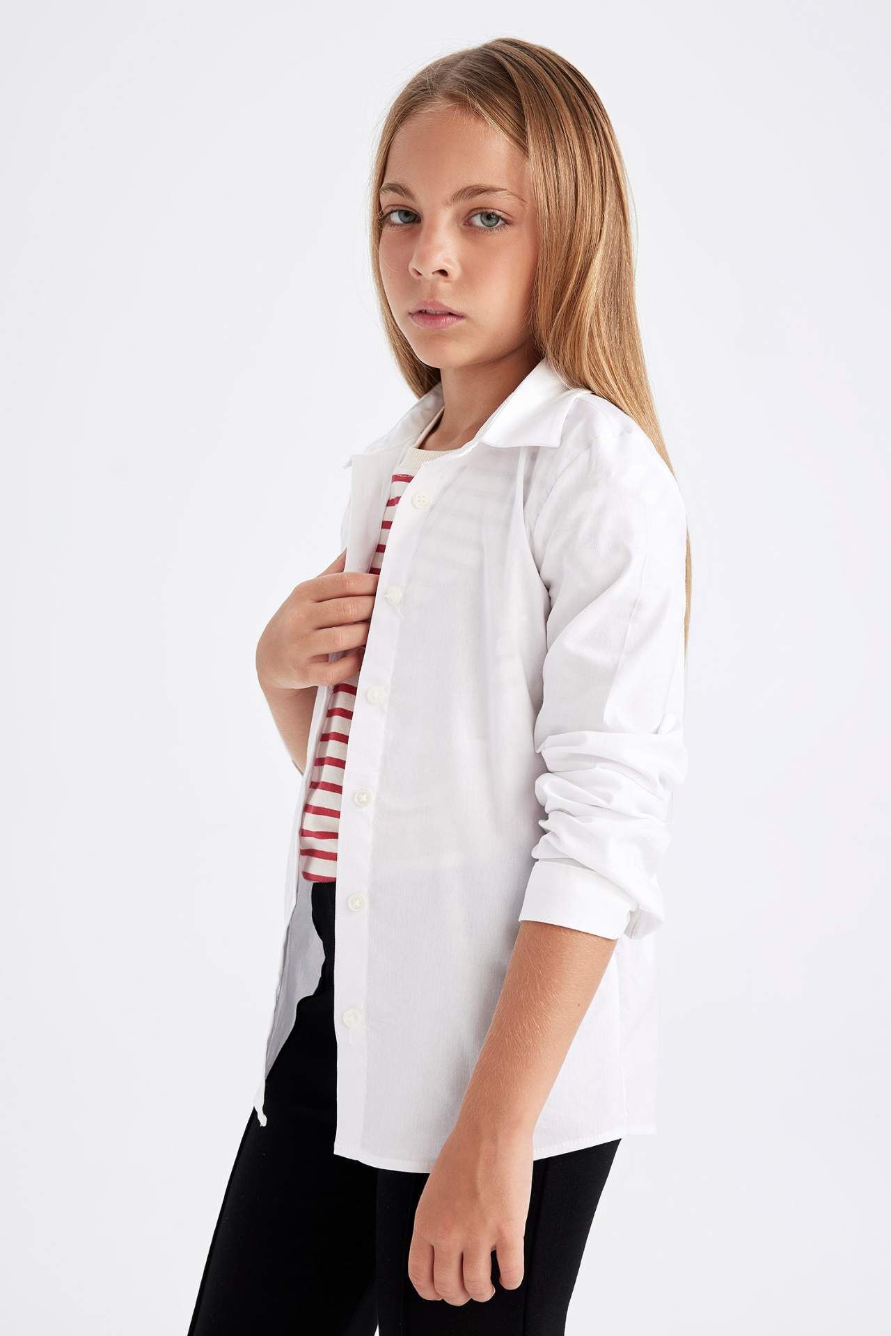 Vücuda oturan slim fit kesimi ve esnek bengalin kumaşıyla bu kız çocuk uzun kollu gömlek, hem şık hem rahat bir kullanım sunar. Modern tasarımıyla günlük ve özel kombinlerin tamamlayıcısıdır. Pamuk 62%,Elastan 7%,Poliester 31%