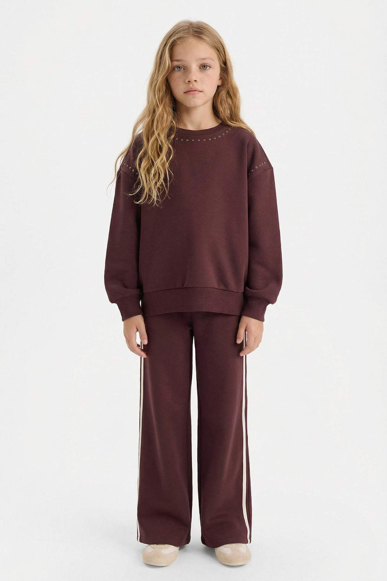Kız Çocuk Overshirt Fit Taşlı İçi Yumuşak Tüylü Kalın Sweatshirt Kumaşı Sweatshirt