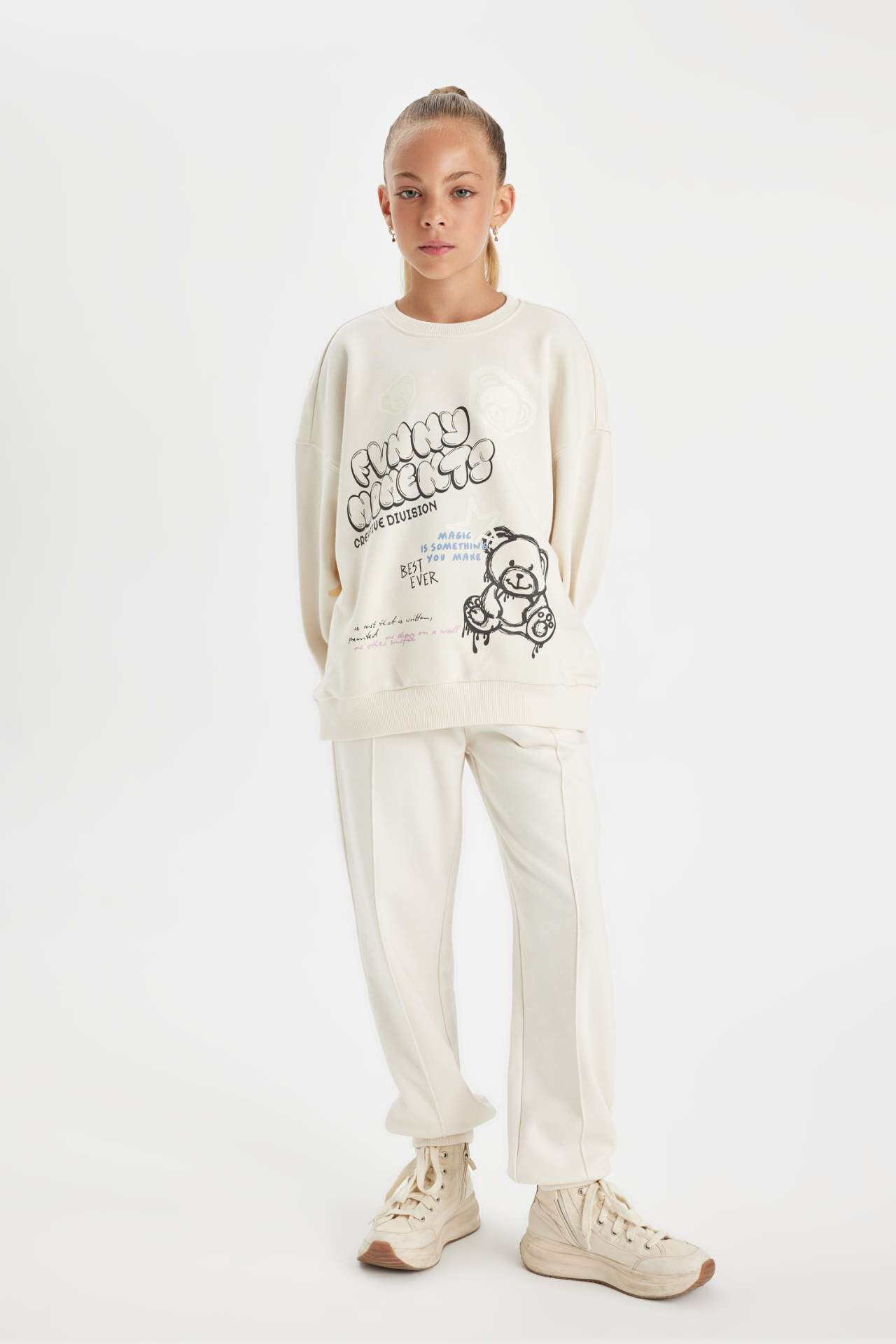 Kız çocuklar için tasarlanan Oversize Fit Bisiklet Yaka Baskılı Sweatshirt, rahatlığı ve şıklığı bir arada sunuyor. Yüksek kaliteli malzemelerden üretilen bu sweatshirt, her mevsimde kullanım için idealdir. Gardırobunun vazgeçilmezi olmaya aday! Pamuk 61%,Poliester 39%,Pamuk 61%,Poliester 39%
