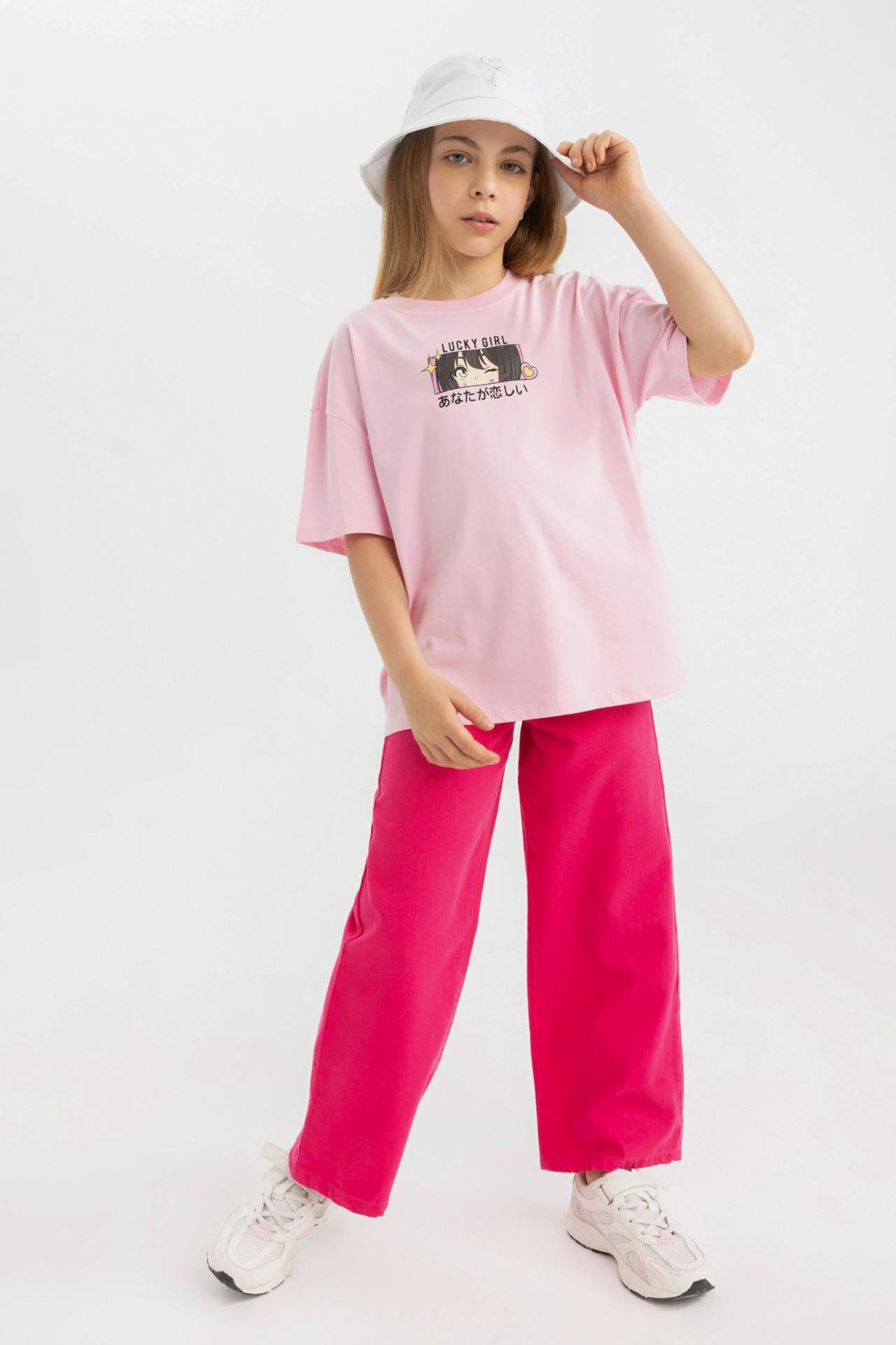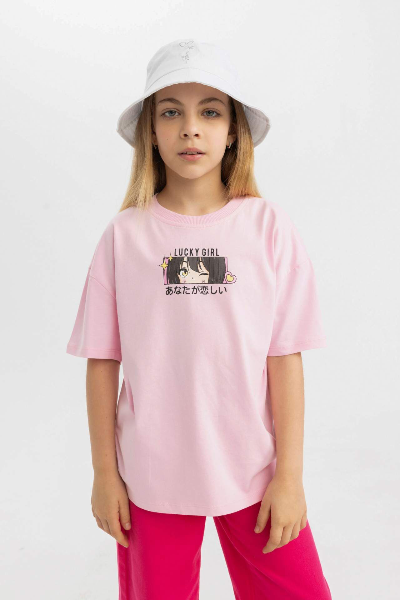 DeFacto Kız Çocuk Oversize Fit Bisiklet Yaka Sırt Baskılı Kısa Kollu Tişört