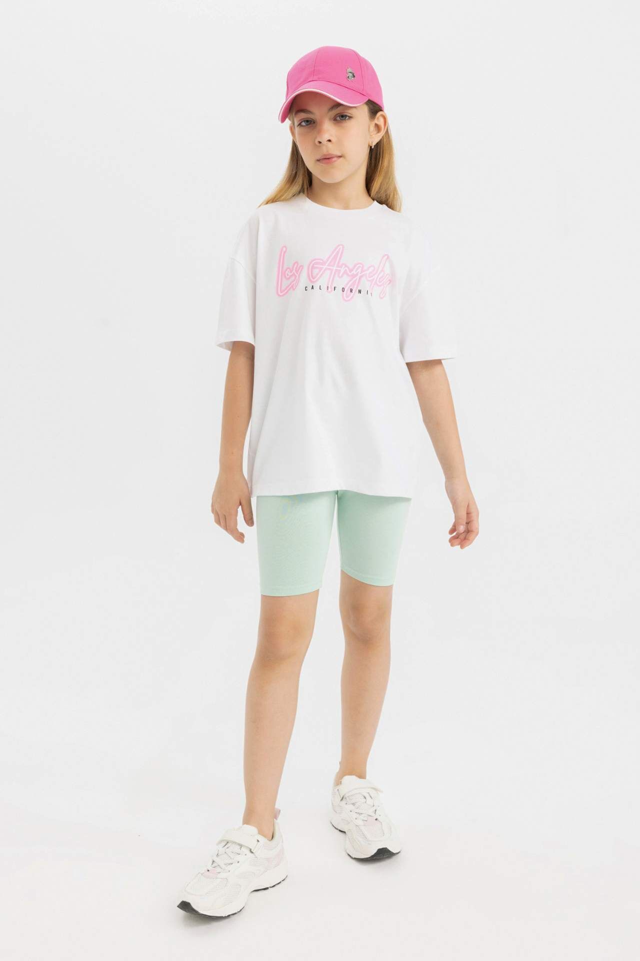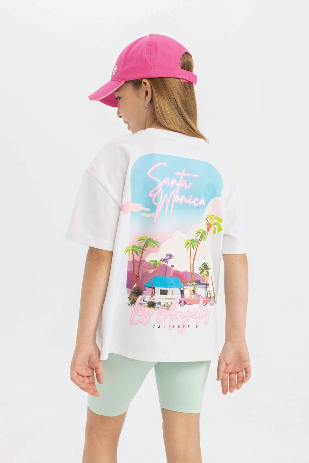 DeFacto Kız Çocuk Oversize Fit Bisiklet Yaka Sırt Baskılı Kısa Kollu Tişört C5281A824SMWT34