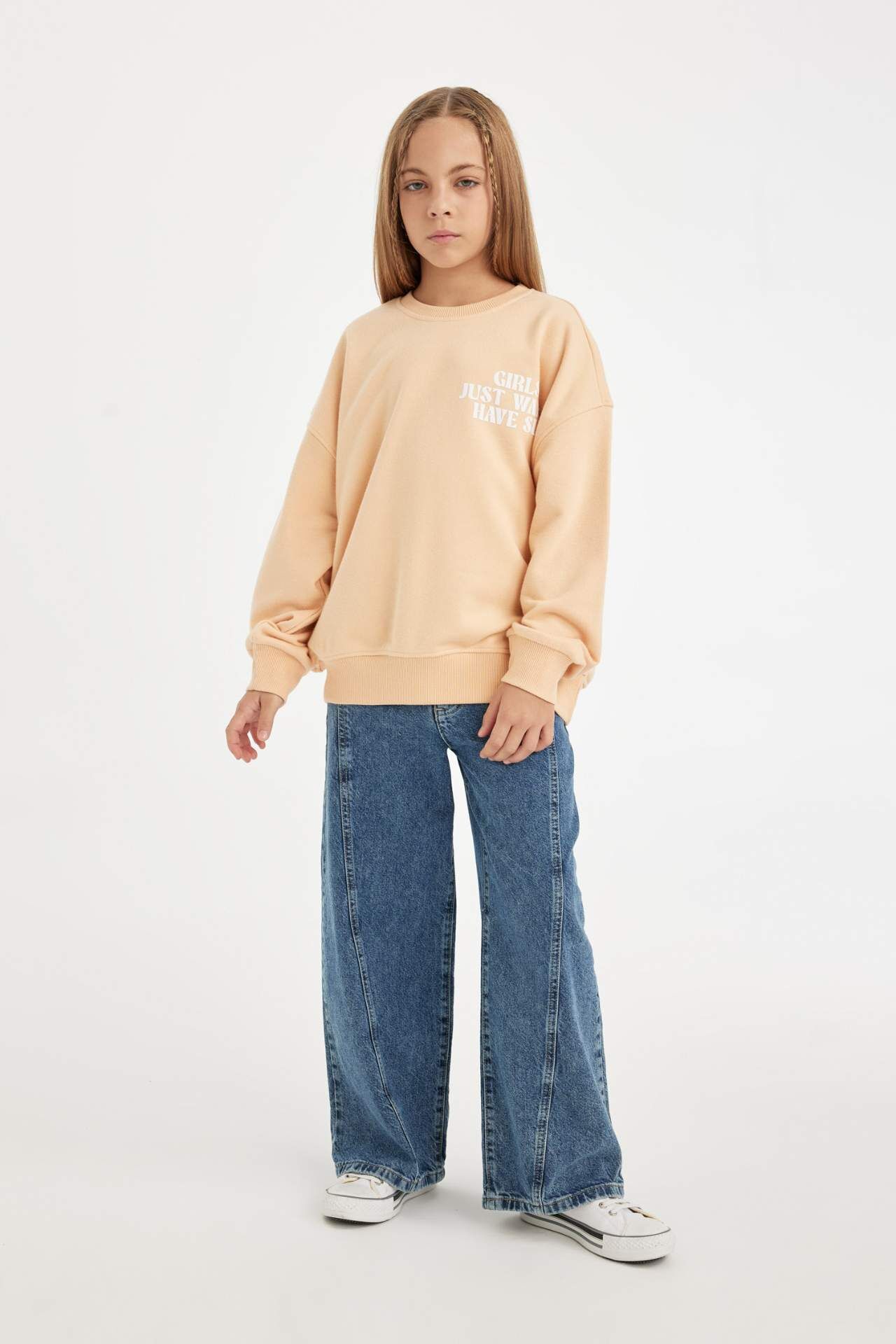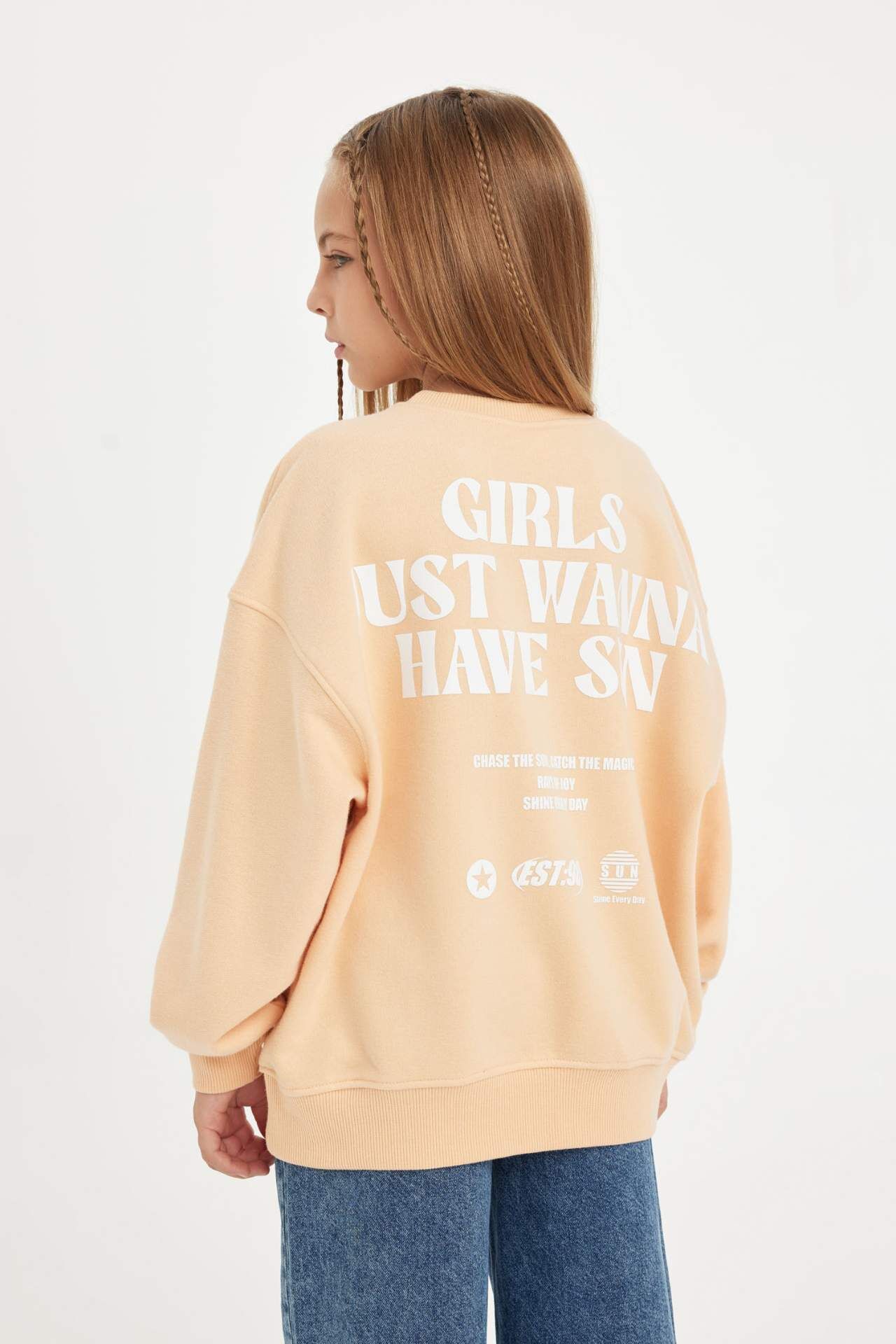 DeFacto Kız Çocuk Oversize Fit Geniş Kalıp Bisiklet Yaka Sırt Baskılı Sweatshirt