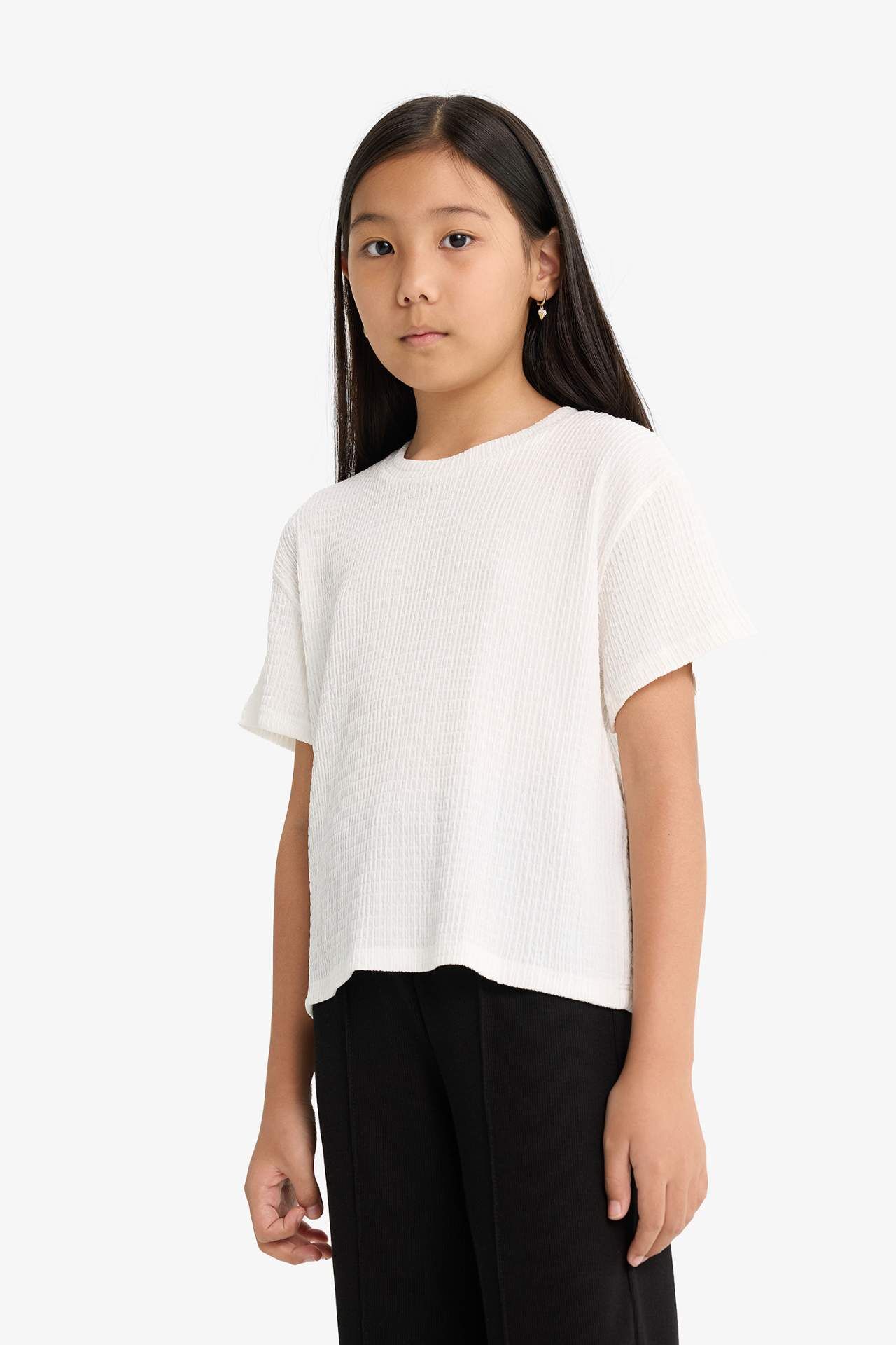 Kız Çocuk Oversize Geniş Kalıp Bisiklet Yaka Kısa Kollu Tişört