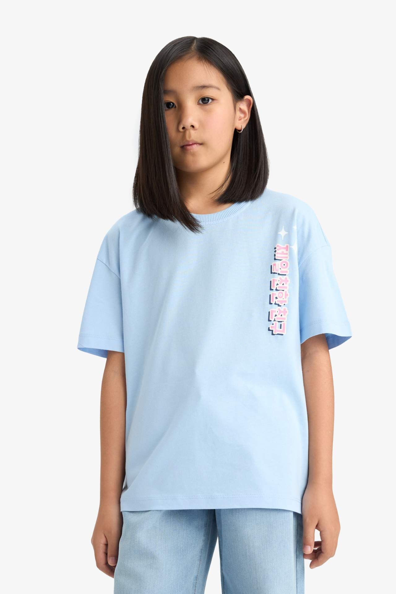 DeFacto Kız Çocuk Oversize Geniş Kalıp Bisiklet Yaka Sırt Baskılı Kısa Kollu Tişört E0367A825SMBE745