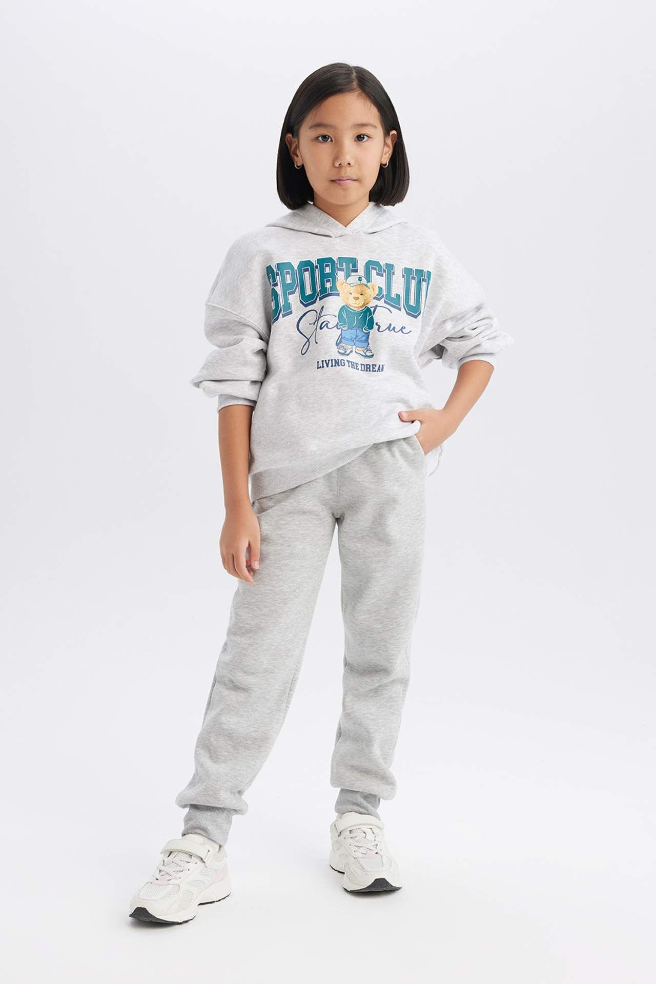DeFacto Kız Çocuk Oversize Geniş Kalıp Kapüşonlu Baskılı Sweatshirt
