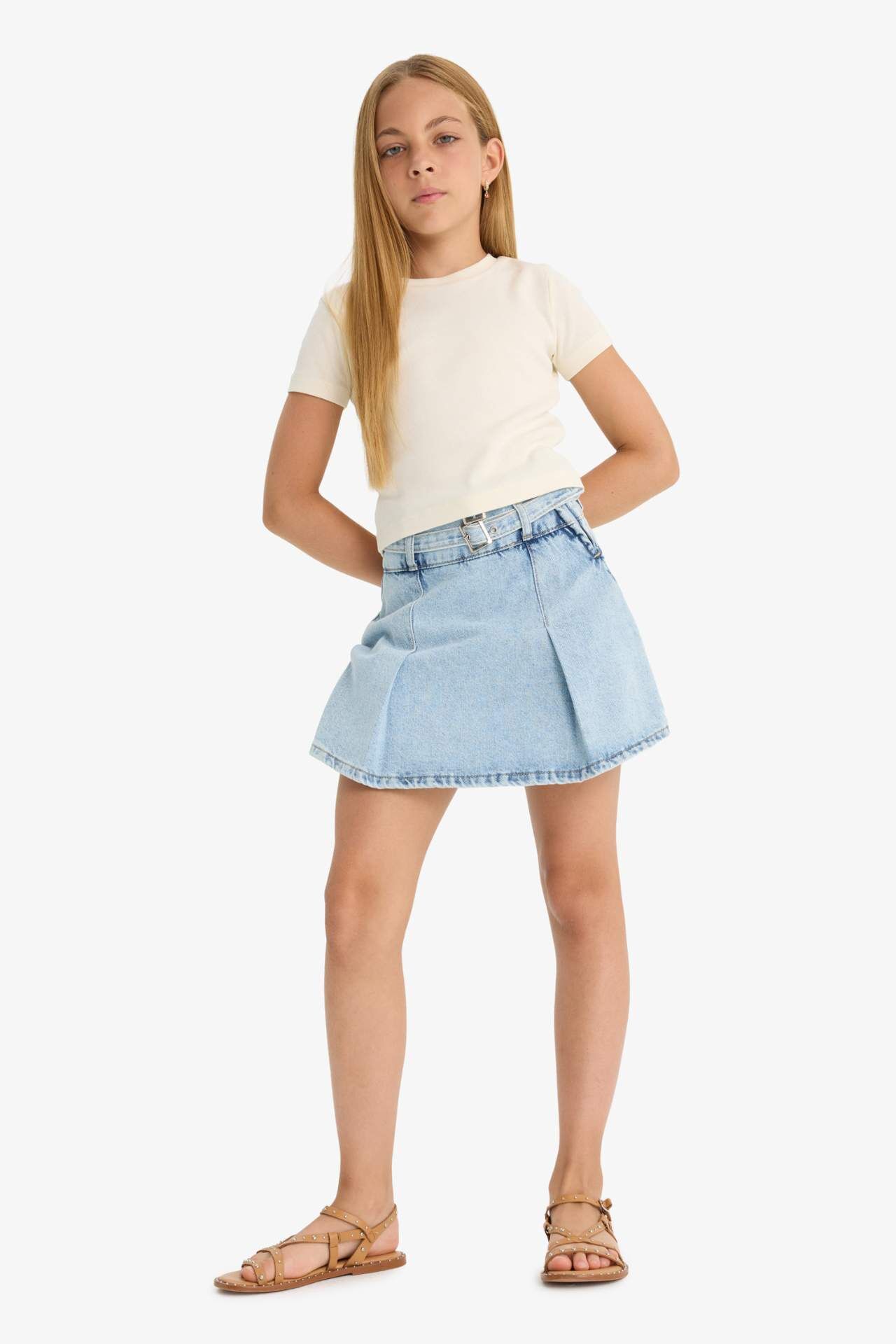 Kız Çocuk Pamuklu Jean Şort Etek