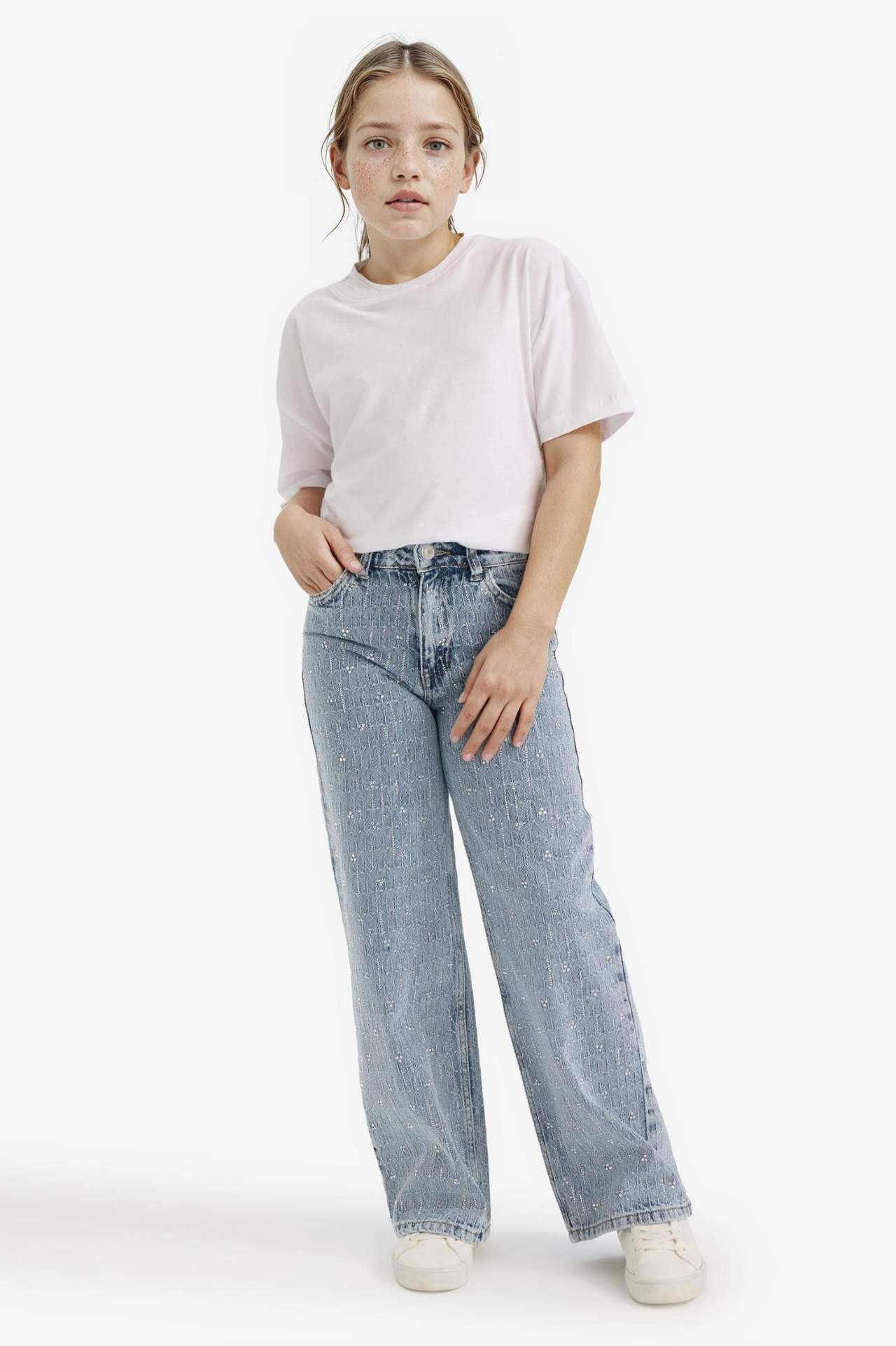 Straight wide fit kesimi ve geniş paçasıyla Kız Çocuk Straight Wide Fit Geniş Paça Jean Pantolon, rahat hareket imkanı sunarken şık bir görünüm sağlıyor. Günlük kombinlerde modern ve kullanışlı bir tercih oluyor. Pamuk 100%,Pamuk 100%,Pamuk 100%,Pamuk 100%,Pamuk 100%,Pamuk 100%,Pamuk 100%
