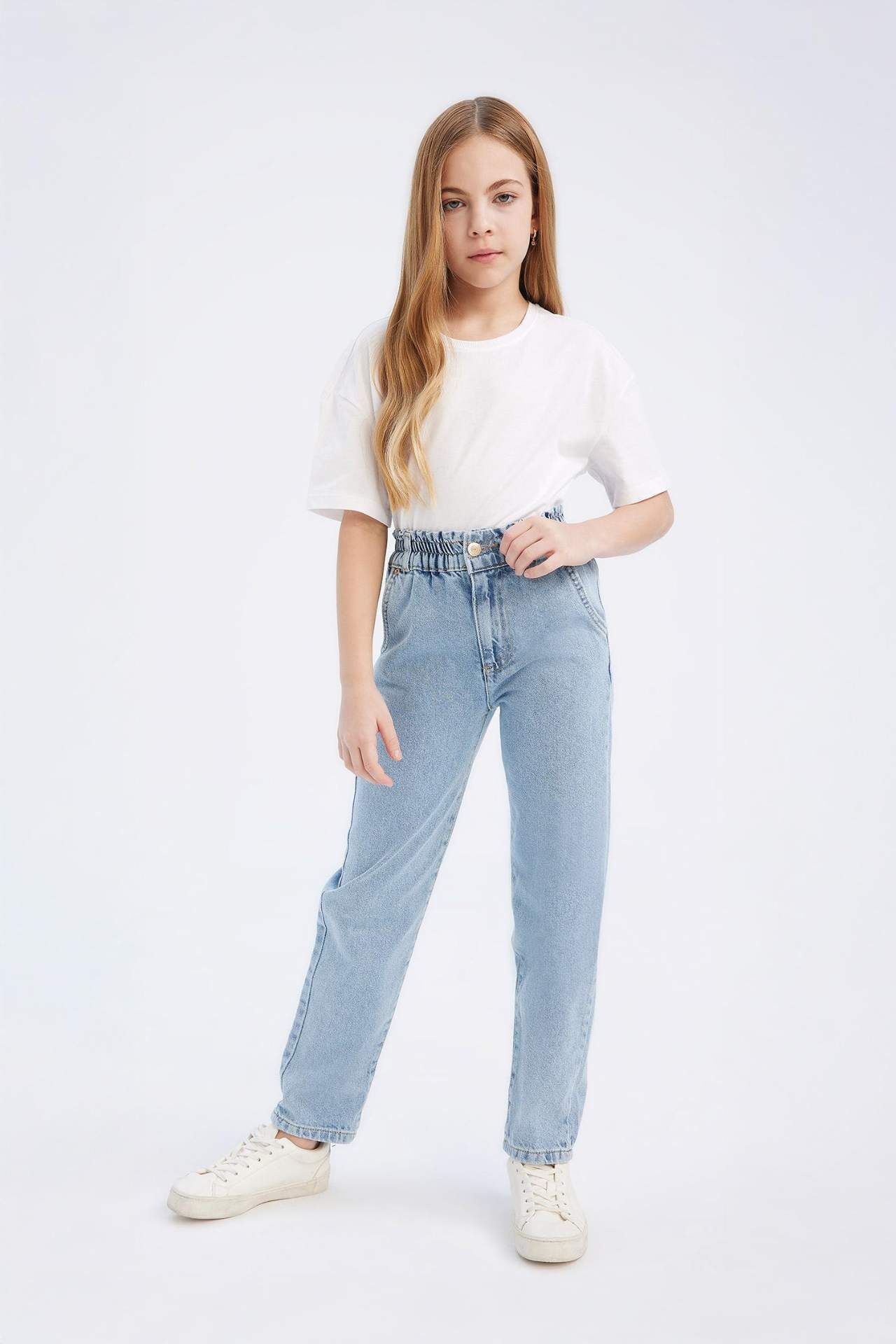 Kız Çocuk Paperbag Jogger Paça Pamuklu Jean Pantolon